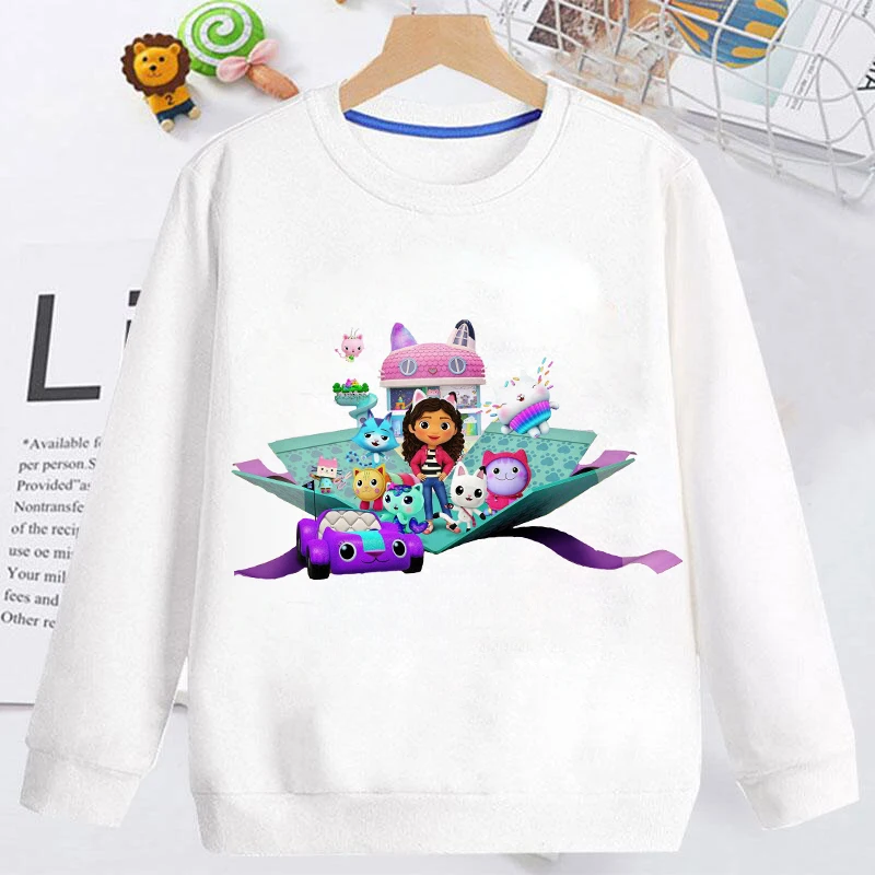 Милые толстовки для девочек с мультяшным габбисом Кукольный дом худи с графическим принтом для девочек модные милые детские белые розовые толстовки топы оптовая продажа