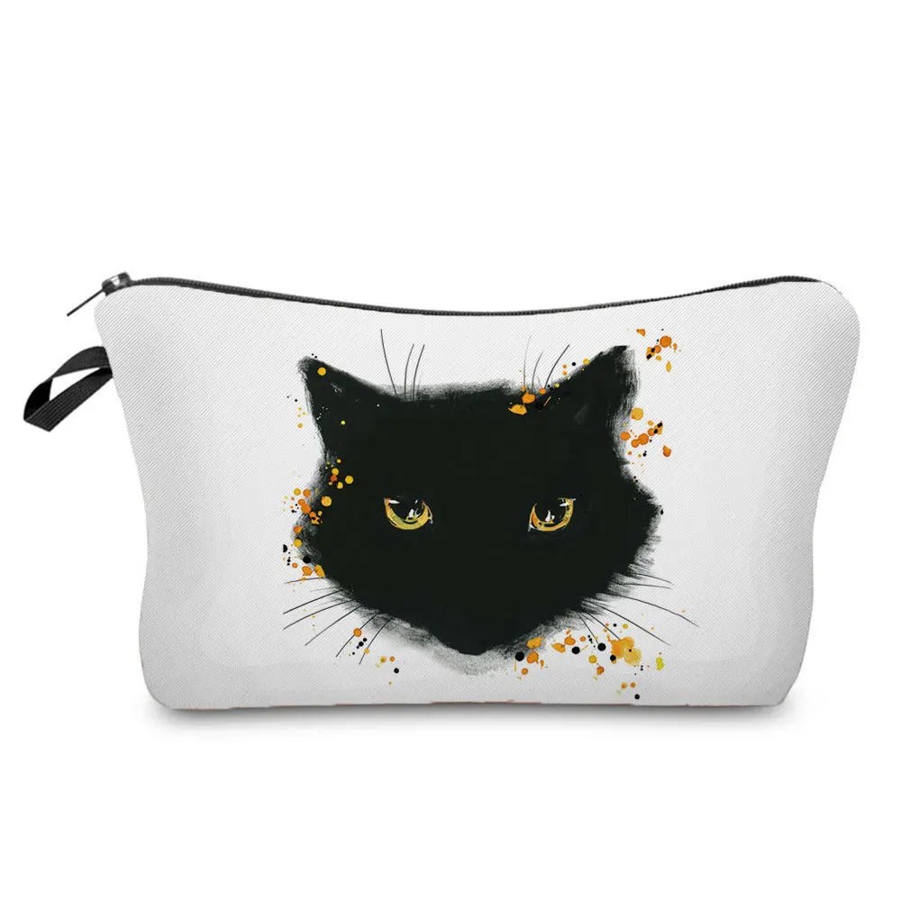 Лидер продаж, женская косметичка с принтом черной кошки, милая Повседневная дорожная переносная сумка для хранения с животными, косметичка, сумки для туалетных принадлежностей с индивидуальным узором