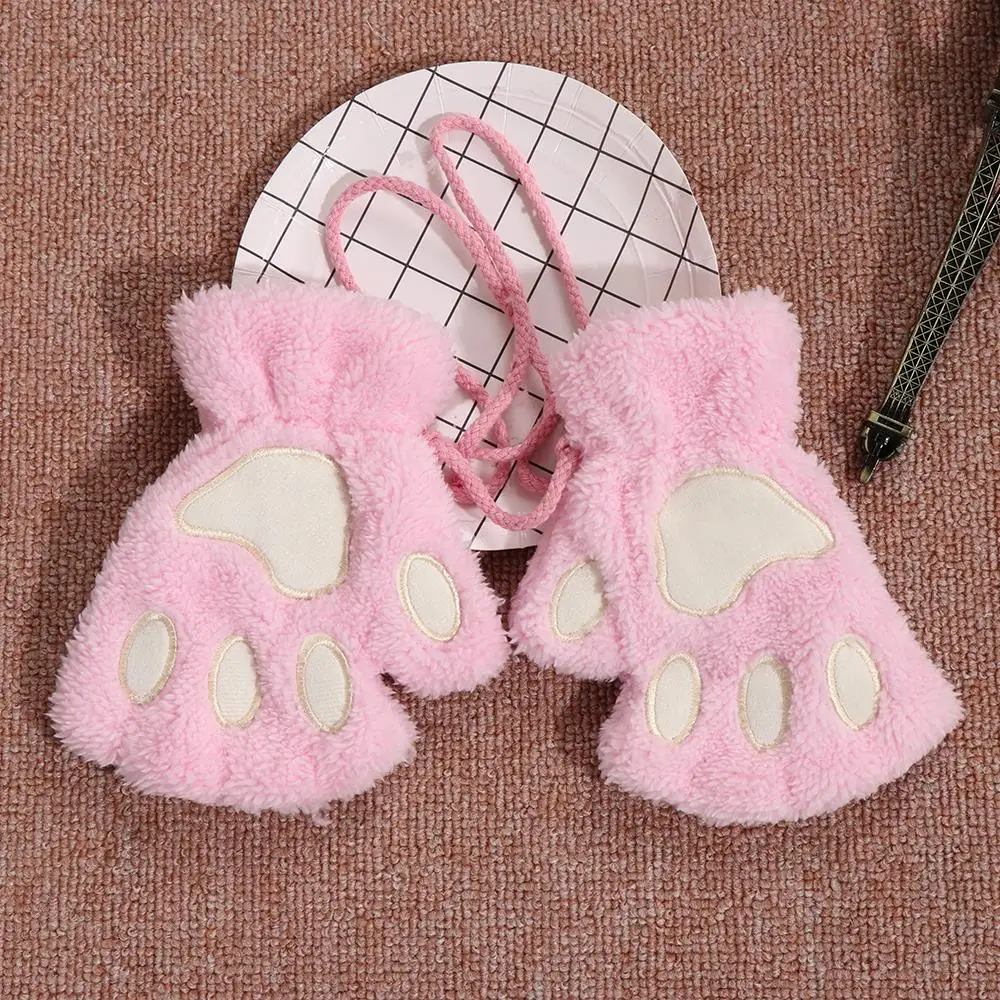 1 пара перчаток без пальцев медведь кошачья лапа Зимние теплые плюш...