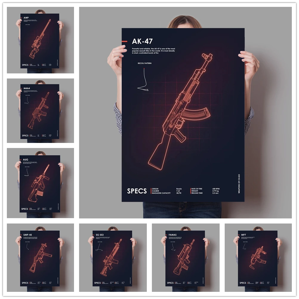 Фотообои с рисунком загара M4A1, неоновая Картина на холсте, Настенная картина, домашний декор для гостиной, спальни, подарки для любителей пистолета