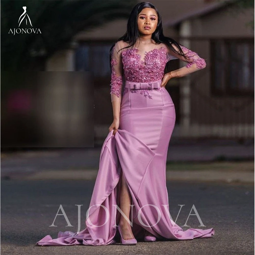Платье подружки невесты с юбкой-годе, с длинным рукавом, сиреневая аппликация, элегантное вечернее свадебное платье