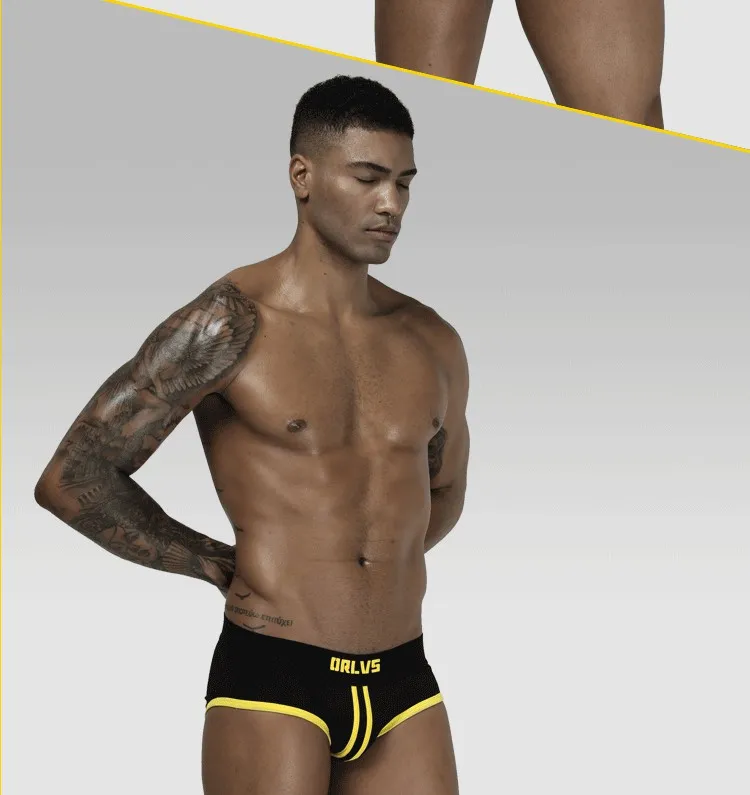 Мужские трусы брифы из сетчатой ткани ORLVS, черные дышащие трусы с...