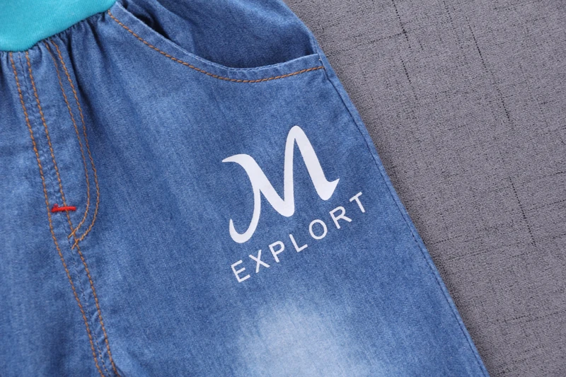 Детский летний костюм из рубашки с коротким рукавом и джинсов для мальчиков