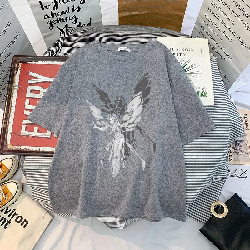Футболка в стиле Харадзюку, винтажная оверсайз футболка с рисунком ...