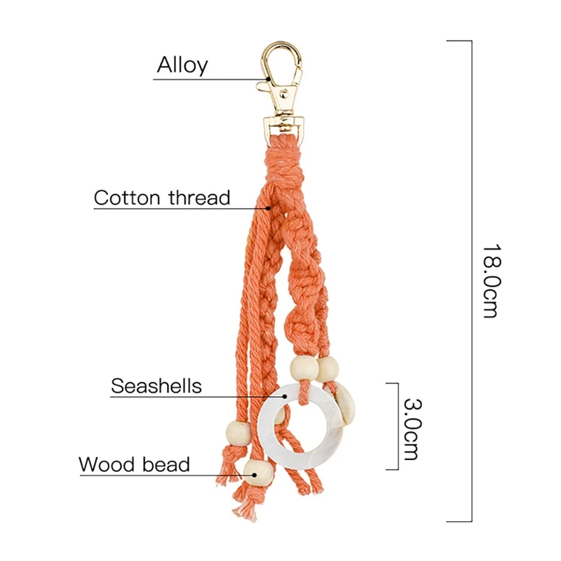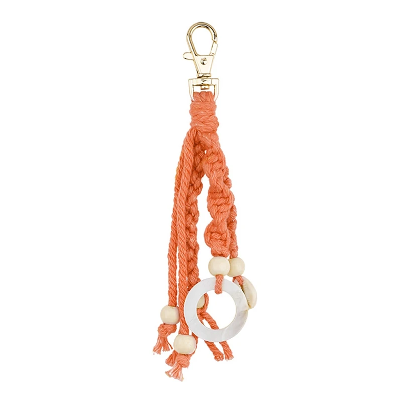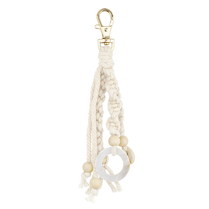 5 шт., бохо макраме, брелки с деревянной бусиной и ракушками, аксессуары ручной работы, брелок для ключей от кошелька