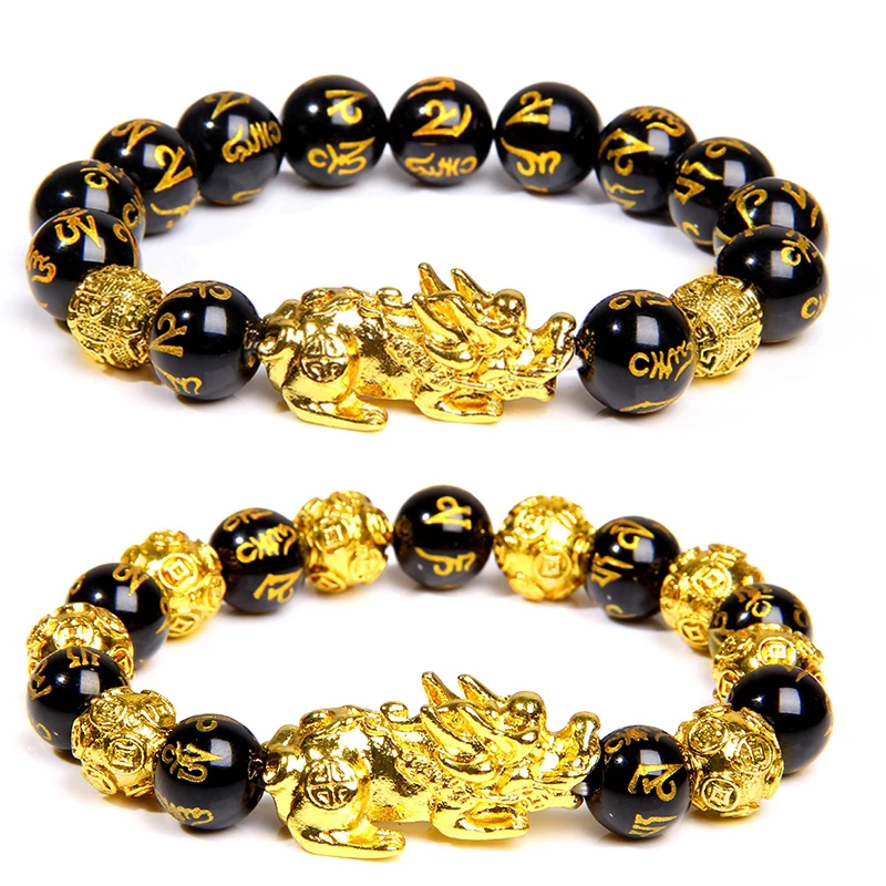 Браслет Fengshui Pixiu из натурального обсидиана, браслеты с бусинами из камня для женщин и мужчин, богатство, удачи, Будда, ювелирные изделия