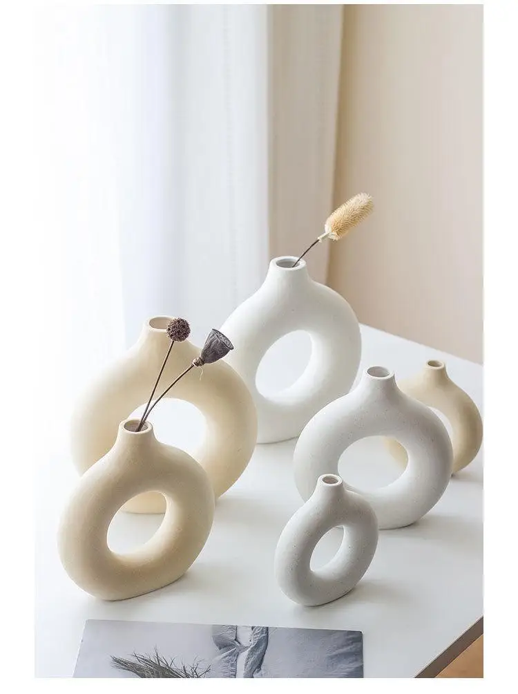Круглая керамическая ваза в скандинавском стиле с отверстиями, пончики, цветочные аксессуары, аксессуары для офиса, рабочего стола, гостиной, интерьерный декор, подарок
