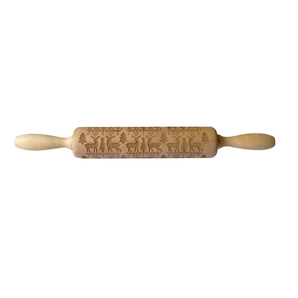 Скалка 35 см с гравировкой и тиснением и рождественскими символами для выпечки, Деревянные Скалки для печенья с тиснением