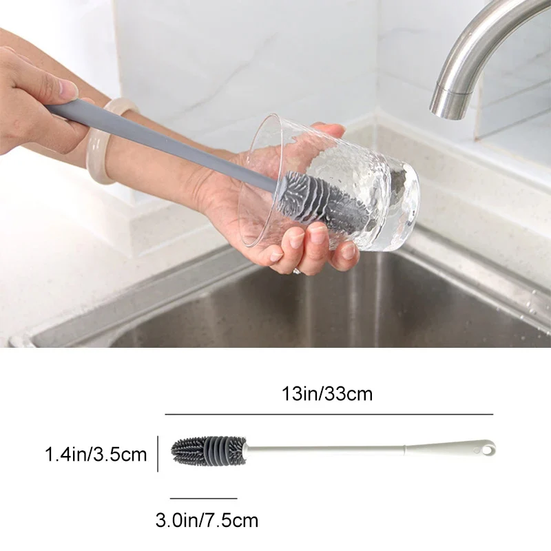 Силиконовая щетка для бутылки с длинной ручкой, гибкий портативный очиститель для бутылок с водой для мытья емкостей