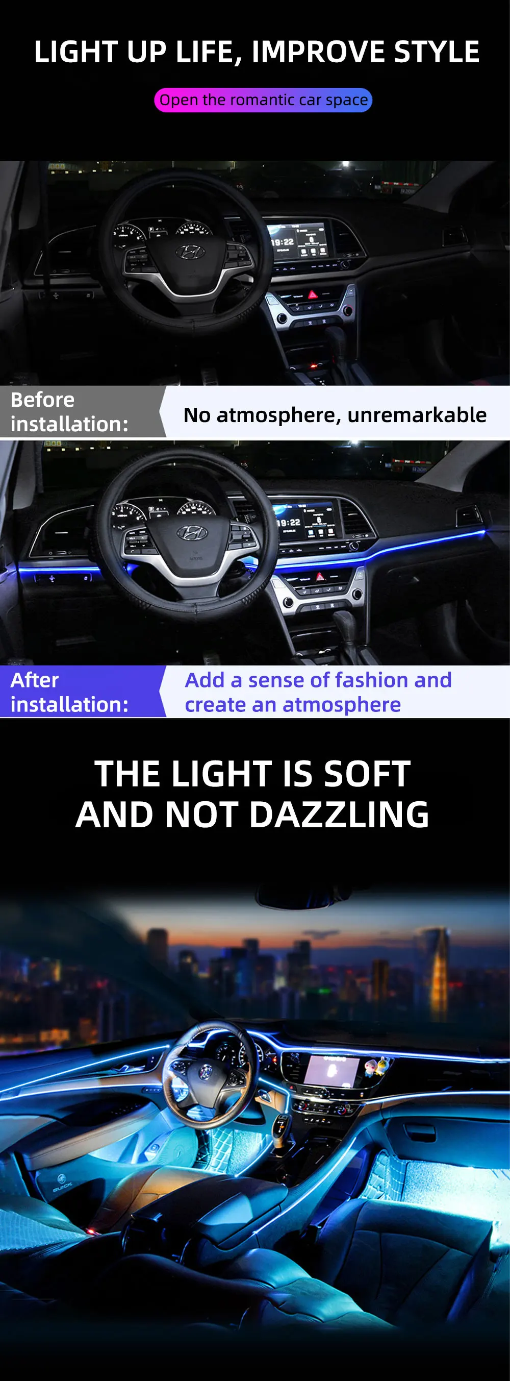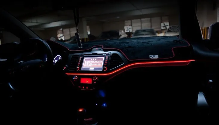 Автомобильная Гибкая неоновая светодиодная лента для EL-провосветильник, штепсельная лента, светодиодный Кая Светодиодная лента с проволочной кромкой для стайлинга автомобиля, 12 В, веревка