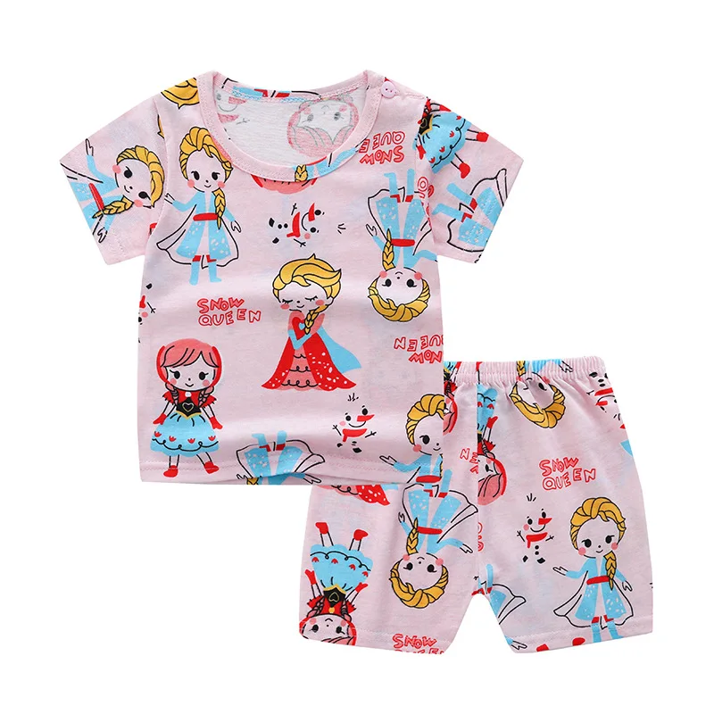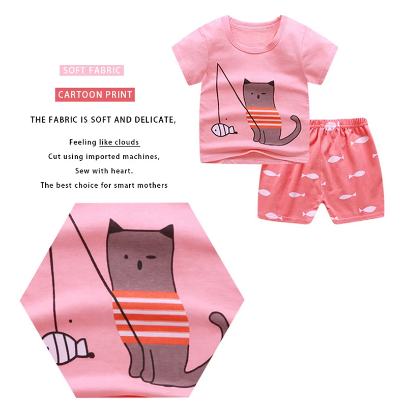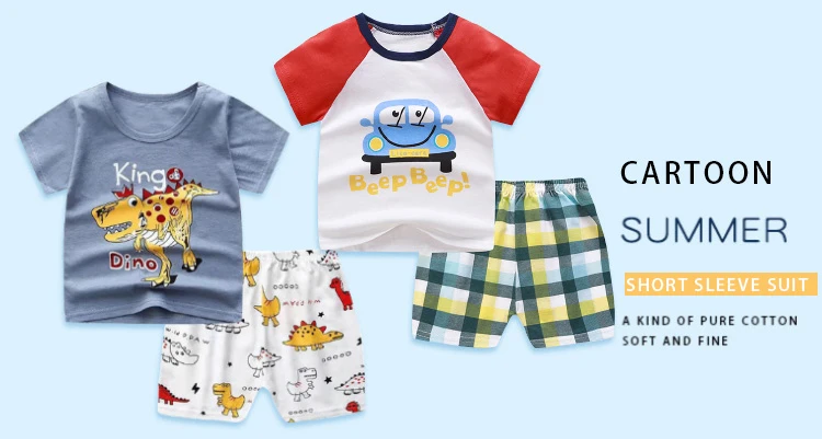 Хлопковая одежда для маленьких мальчиков и девочек, летний костюм, Детские комплекты, Милая футболка для малышей