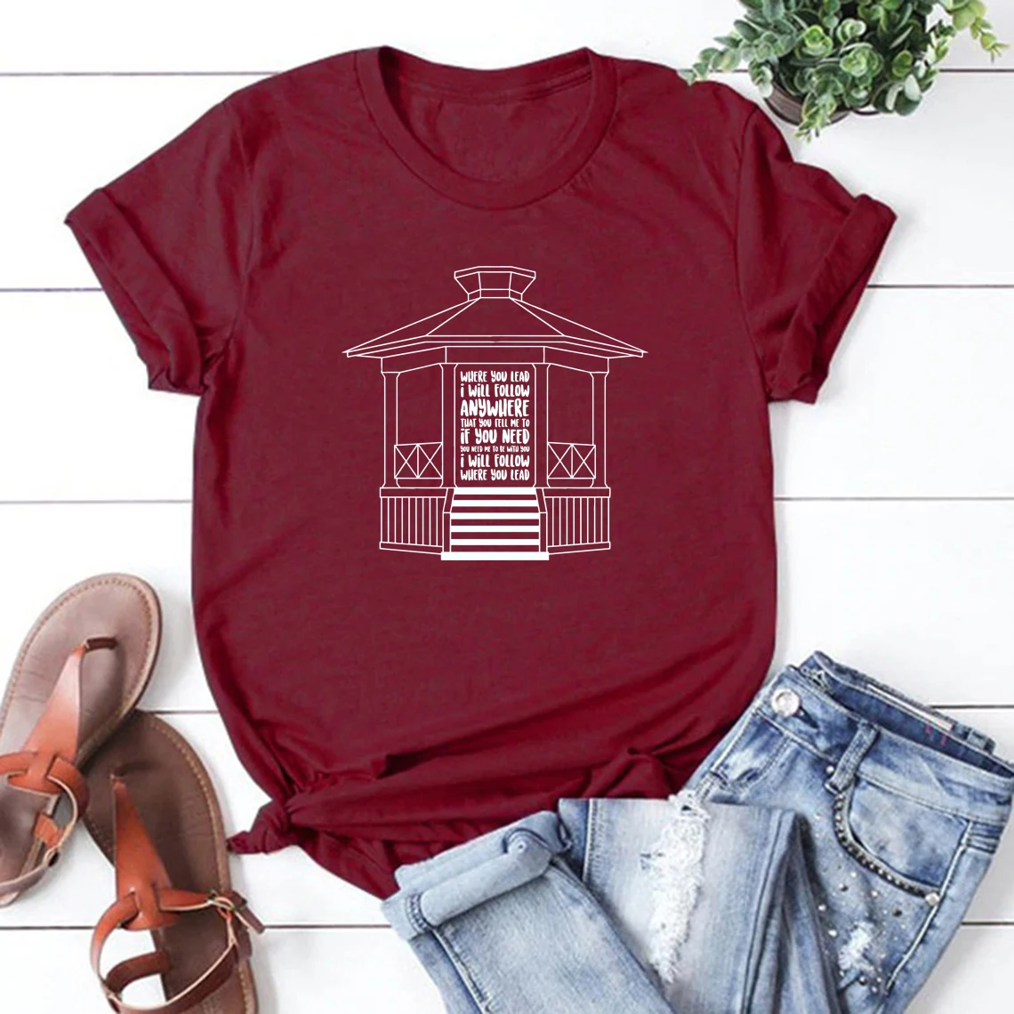 Футболка с надписью Где вы ведете, я следую за ней, футболка для девочек, футболка для ТВ-шоу, графические футболки, женские футболки с коротким рукавом, повседневные топы