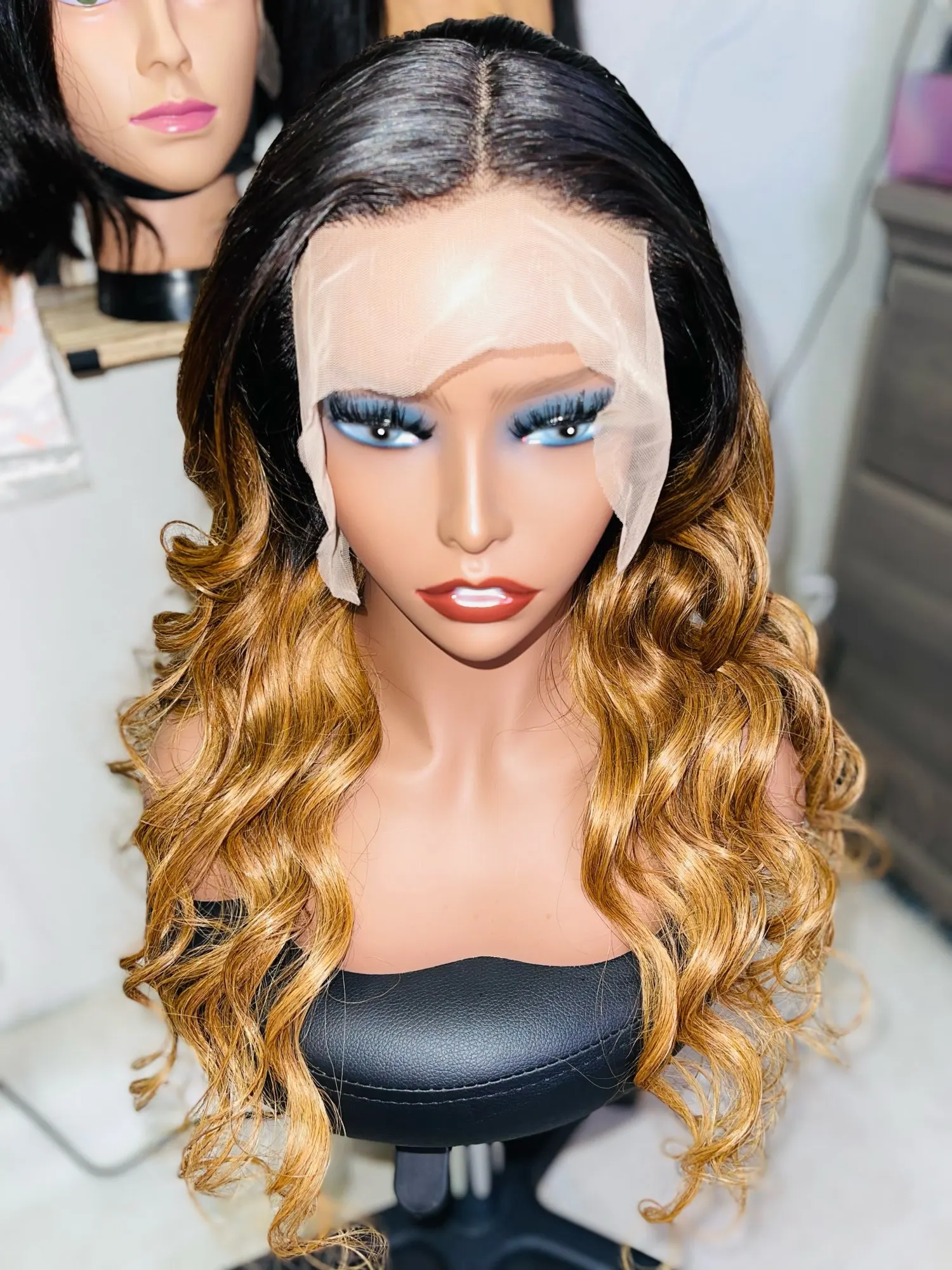 Парики из человеческих светлых волос с эффектом омбре 1B27, волнистые парики на сетке спереди, плотность 180%, предварительно выщипанные медовые светлые волнистые парики на сетке для чернокожих женщин