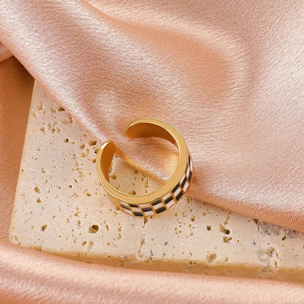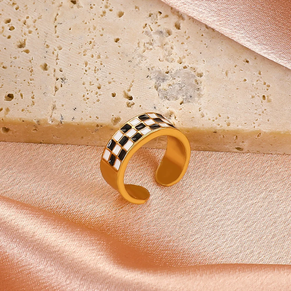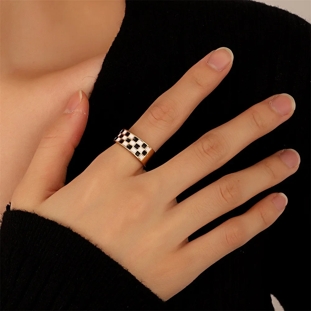 ZLALHAJA черно-белые клетчатые шахматные кольца для женщин открытое регулируемое крупное Кольцо Индивидуальные 2022 модные ювелирные изделия