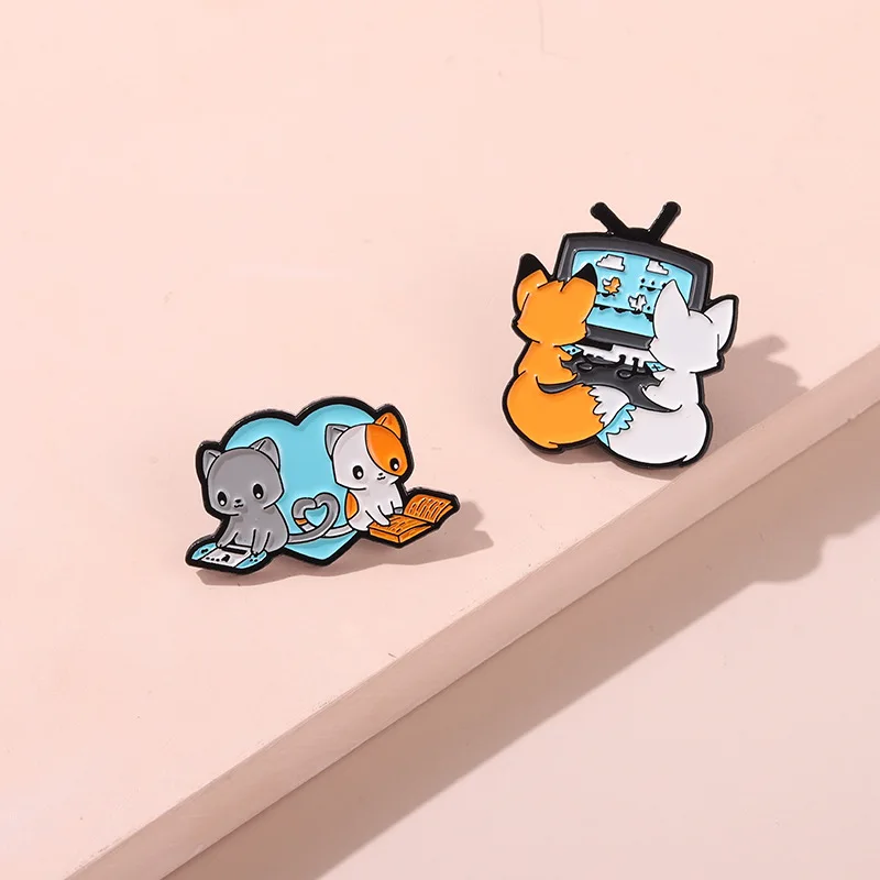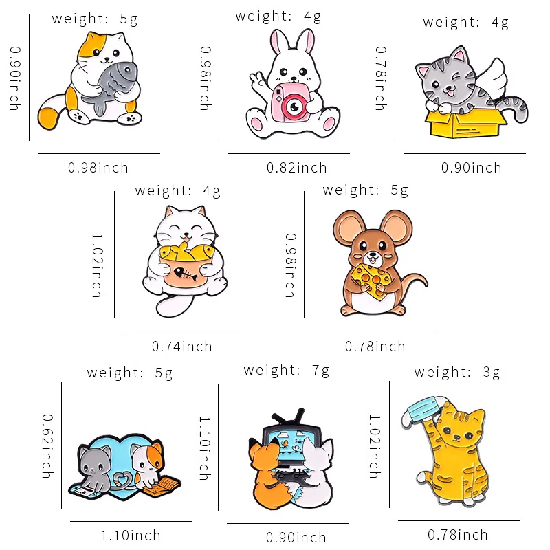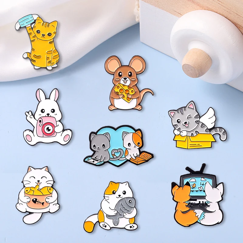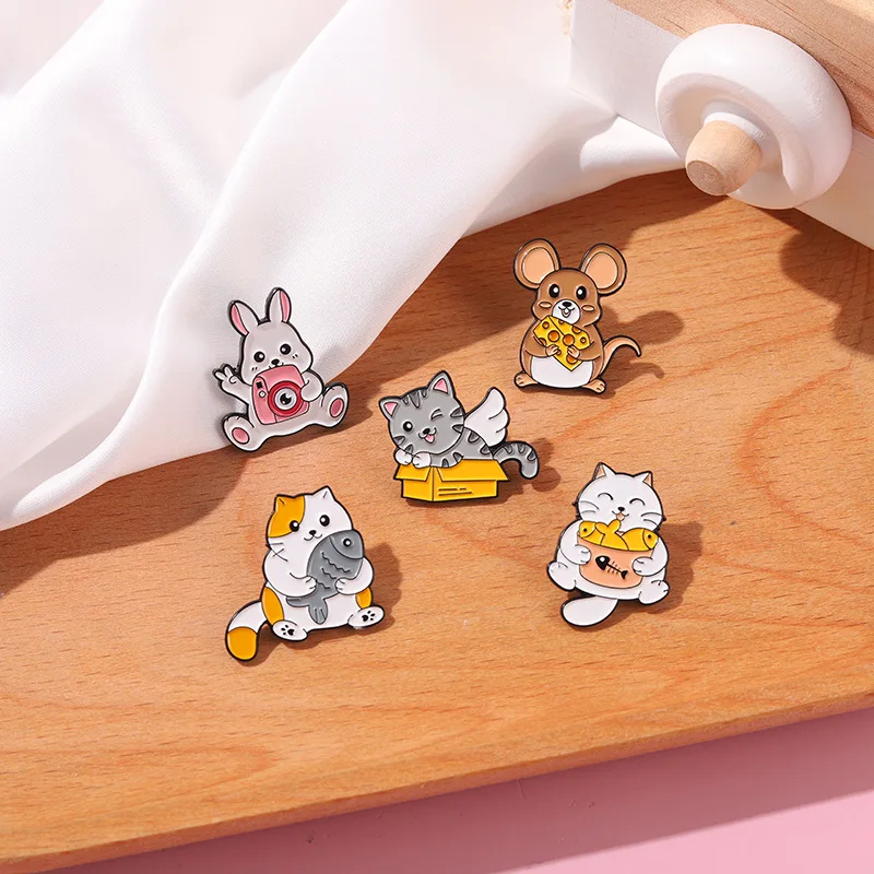 Мультяшные животные эмалевые заколки кошка рыба мышь сыр кролик сим...