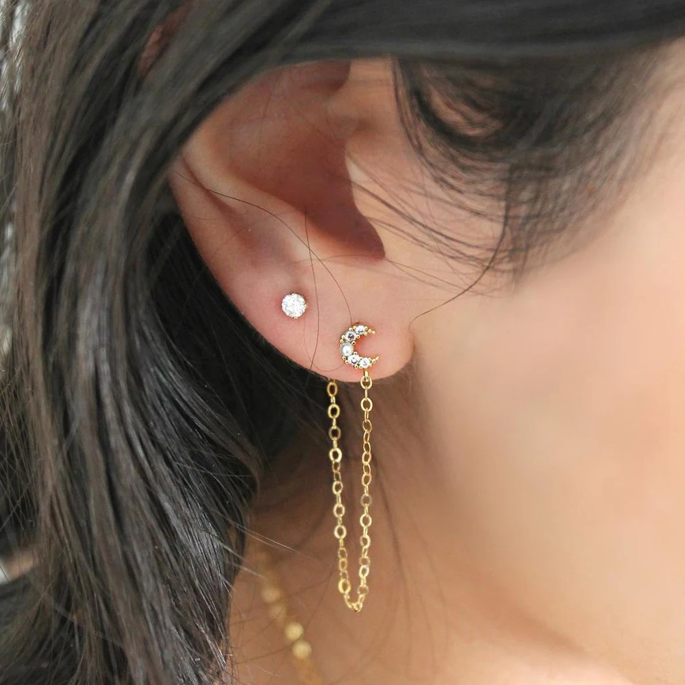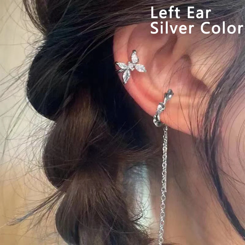 KISSWIFE Новые модные золотые серьги-клипсы с лунной звездой, зажим для ушей для женщин, простой поддельный хрящ, длинная цепочка с кисточками, ювелирные изделия-манжеты для ушей