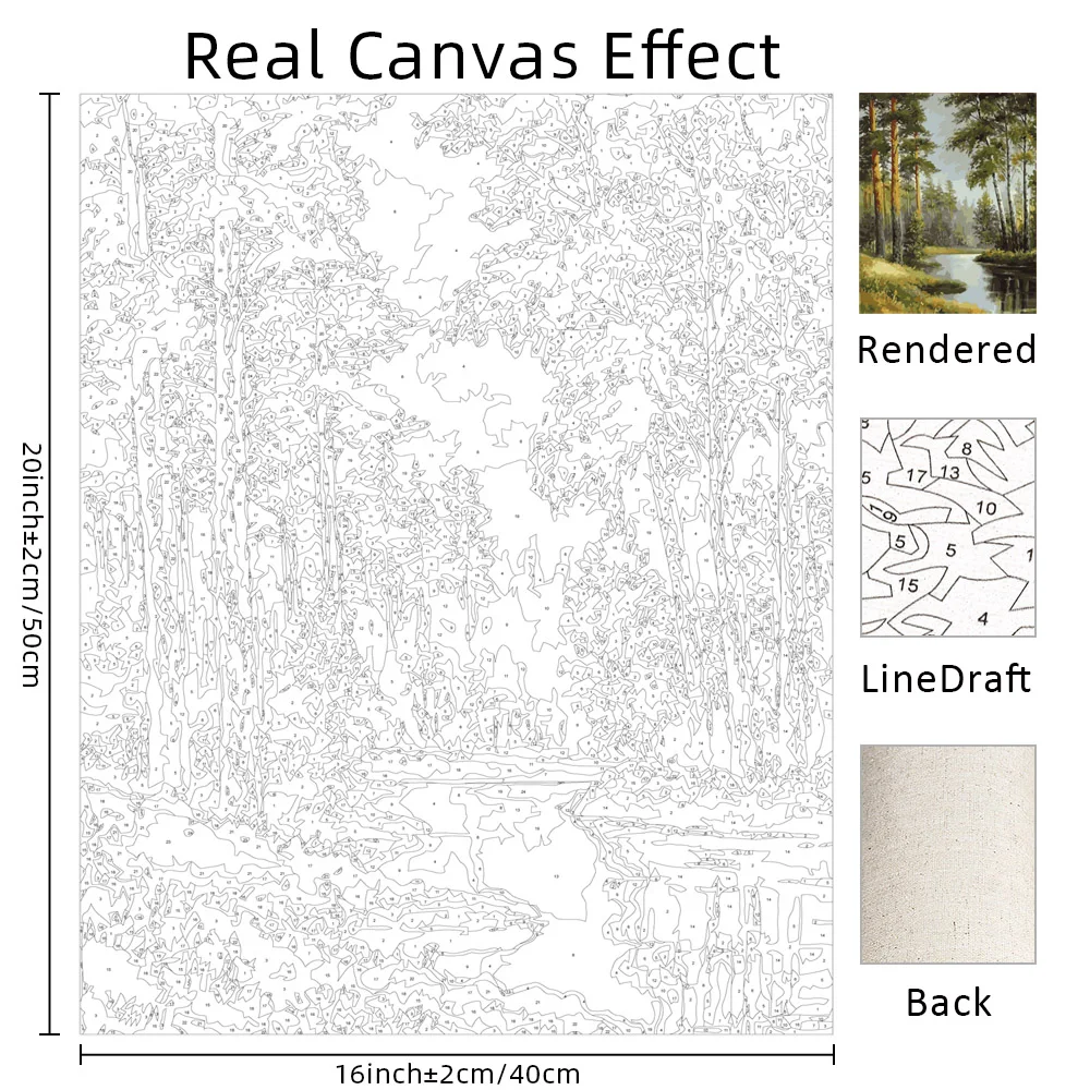 VA-1521 живопись по номерам, дерево, река, пейзаж, рисование на хол...