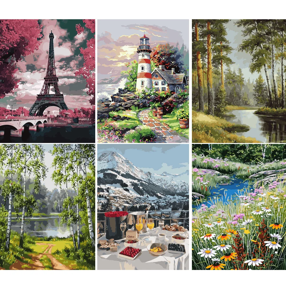 _ Морской Горный пейзаж, DIY Раскраска по номерам 40 50 для взрослых, акриловая масляная краска, картина, раскраска, рисование по номерам, набор