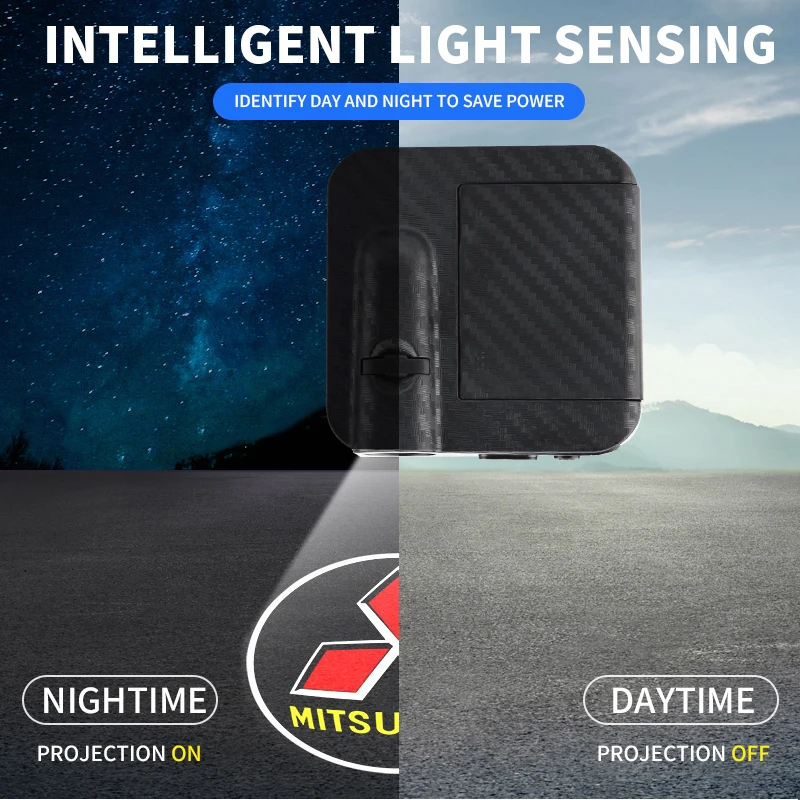 2. Умный светильник. Ослепляющий светильник с логотипом и сигнальный светильник будут отображаться на земле, когда вы откроете дверь автомобиля, и он выключится, когда вы закроете дверь.