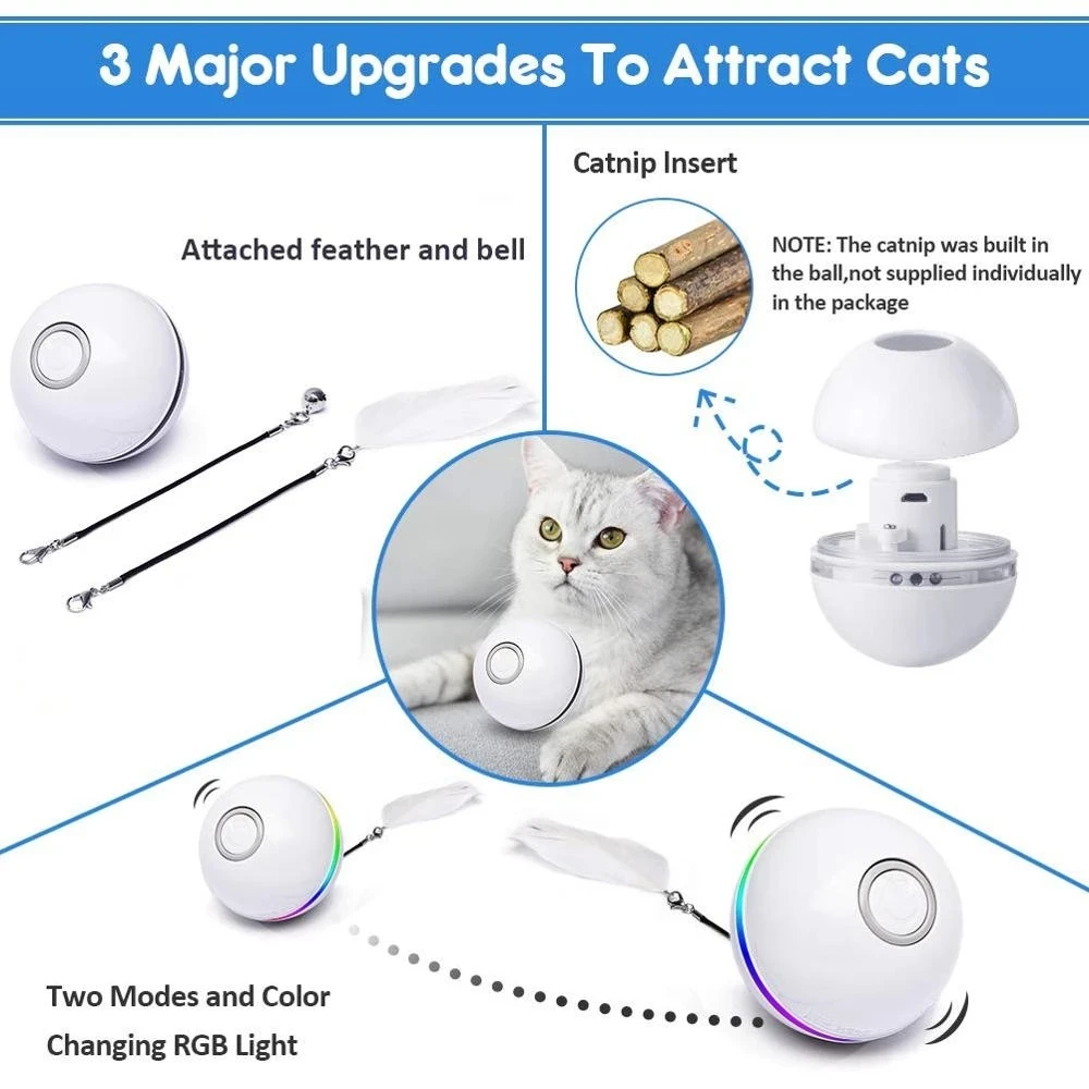 Автоматические умные игрушки для кошек, перезаряжаемый через USB волшебный роллер, интерактивные игрушки, светодиодный самовращающийся Шар С Кошачьей Мятой, Колокольчик для кошек и собак