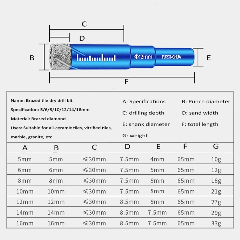 Паяная сухая дрель, многофункциональный аппарат для сухого сверления мрамора, стекла, гранита, остекленных кирпичей, с открытым отверстием, 5 мм, 6 мм, 8 мм, 10 мм, 12 мм, 14 мм, 16 мм