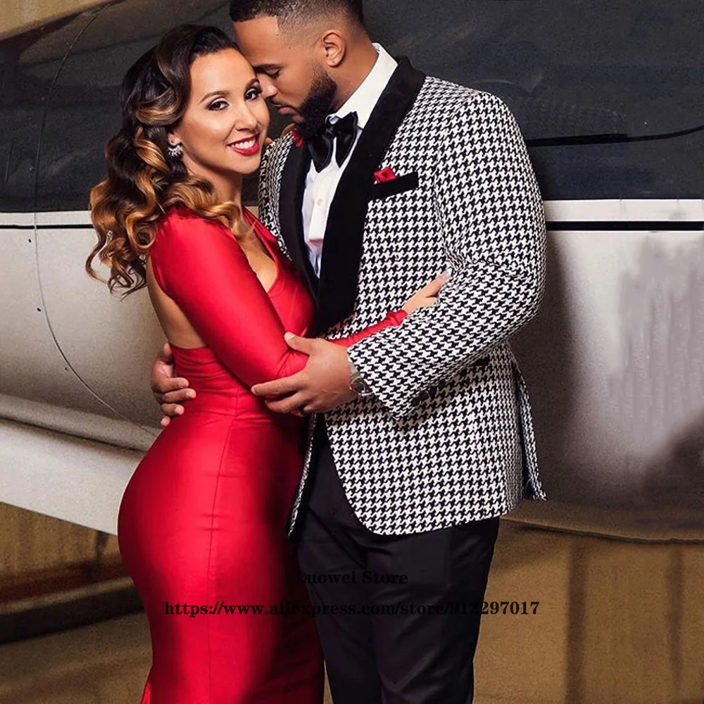 Модные твидовые мужские костюмы из твида гусиные лапки для африканского жениха, свадебный смокинг, комплект из двух предметов, пиджак и брюки, официальный деловой пиджак для мужчин