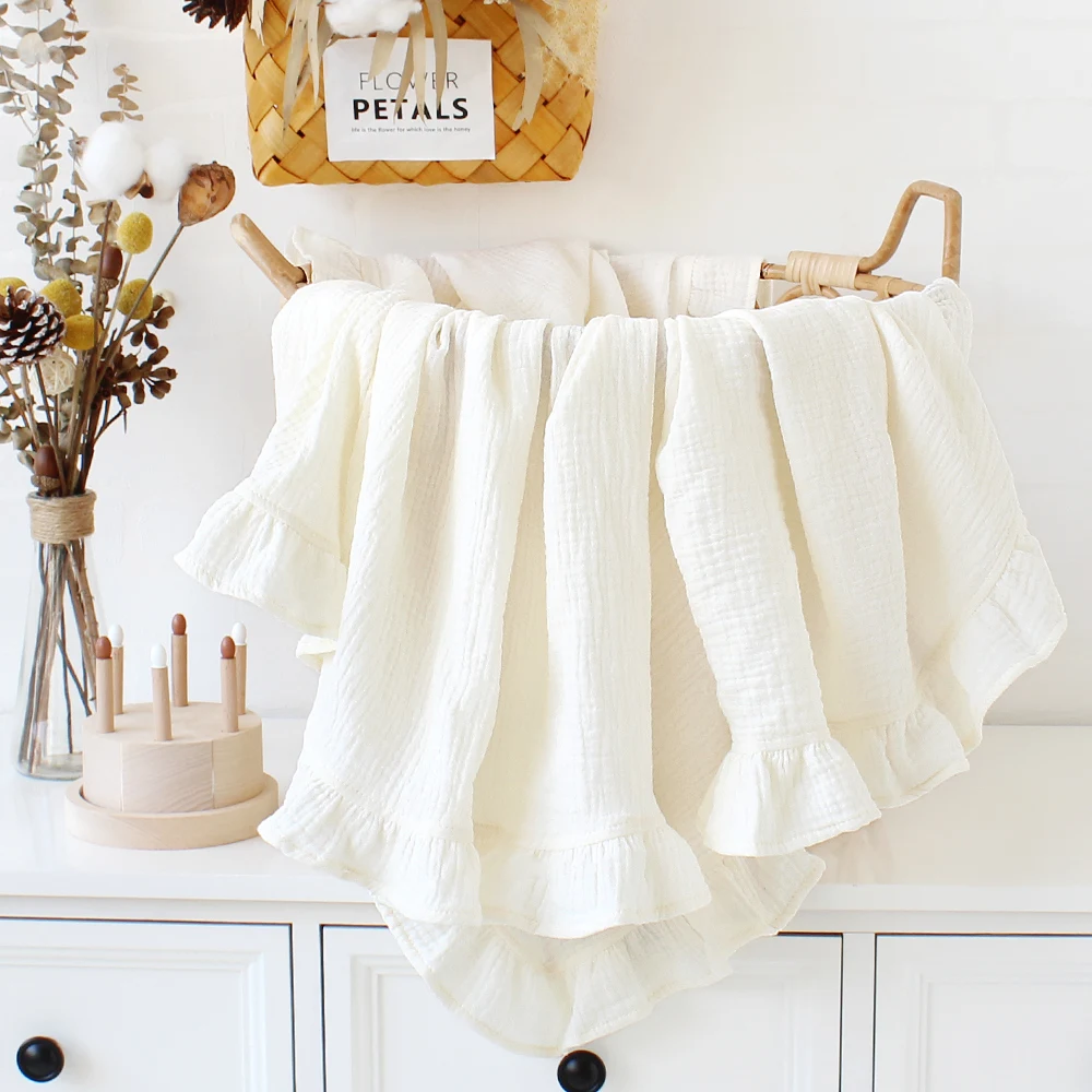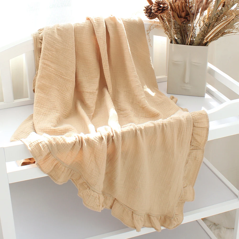 Детское одеяло с рюшами, постельные принадлежности для новорожденных, хлопковые одеяла, муслиновое Пеленальное Одеяло для малышей