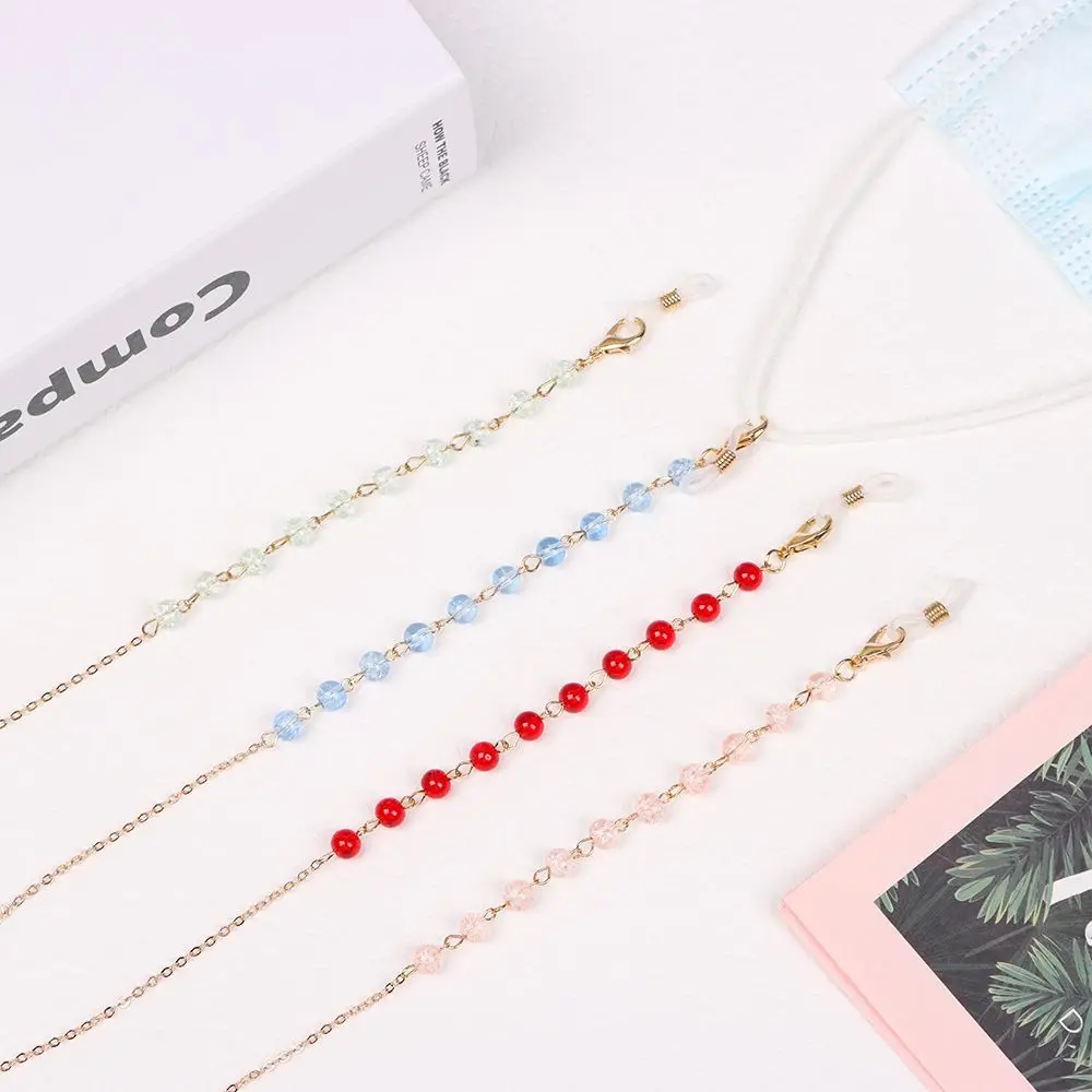 Модные металлические цепочки для очков со стеклянными бусинами, шнуры для солнцезащитных очков, шнуры для очков, ремешок для очков с защитой от потери, держатель шнура