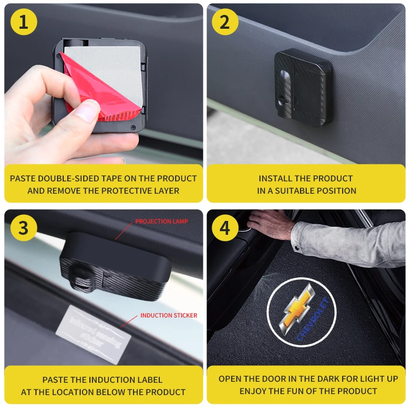 4. Прикрепите светодиодный дверной светильник к двери над порогом автомобильной двери
