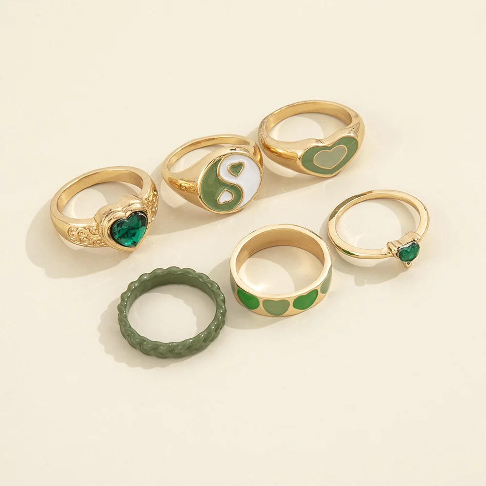 Комплект колец в форме сердца для женщин, винтажные ювелирные украшения из 6 предметов, креативные металлические кольца в стиле ювелирных изделий для вечерние, в стиле панк, золотистого цвета, с надписью и цветком, Y2k