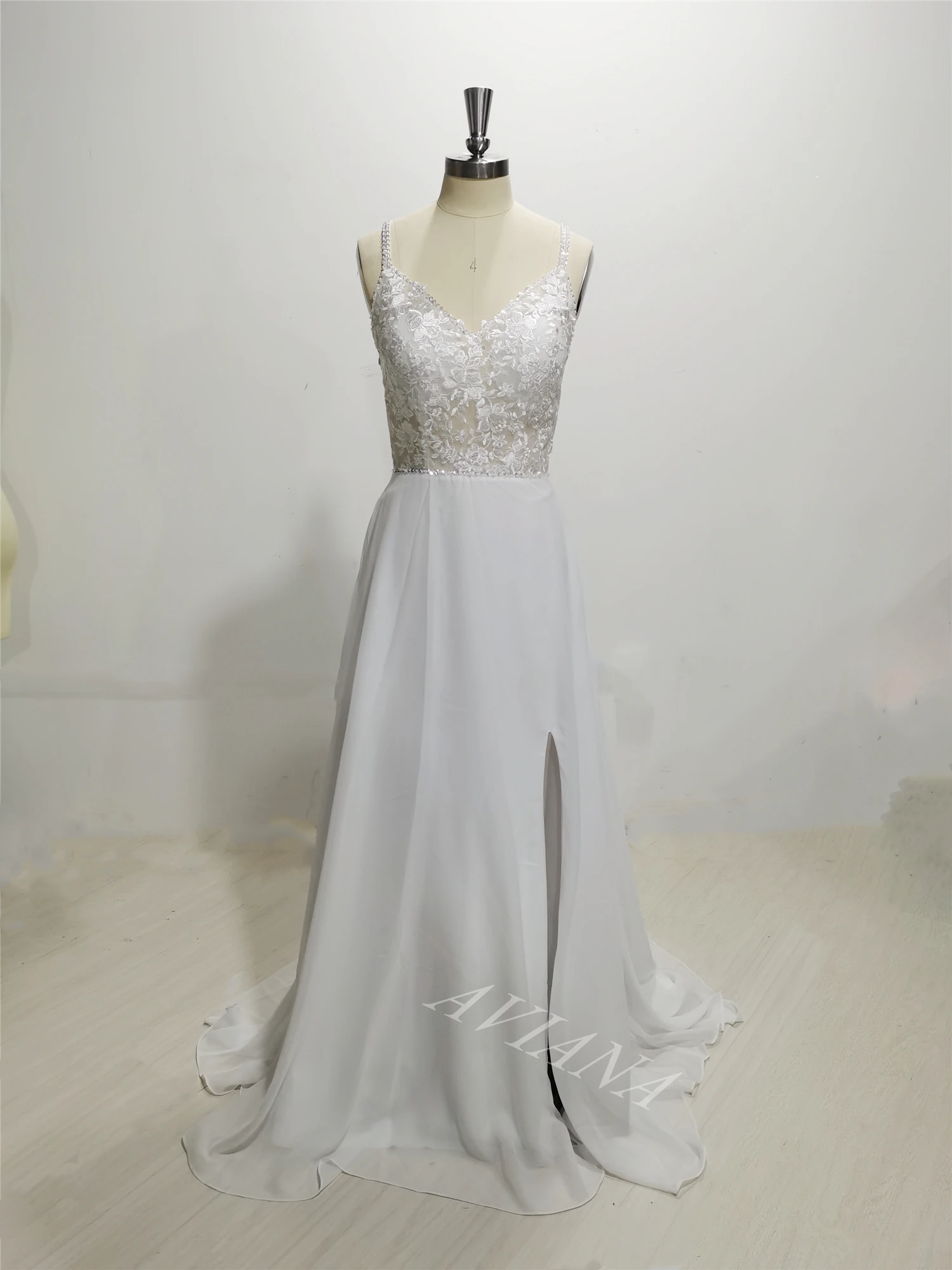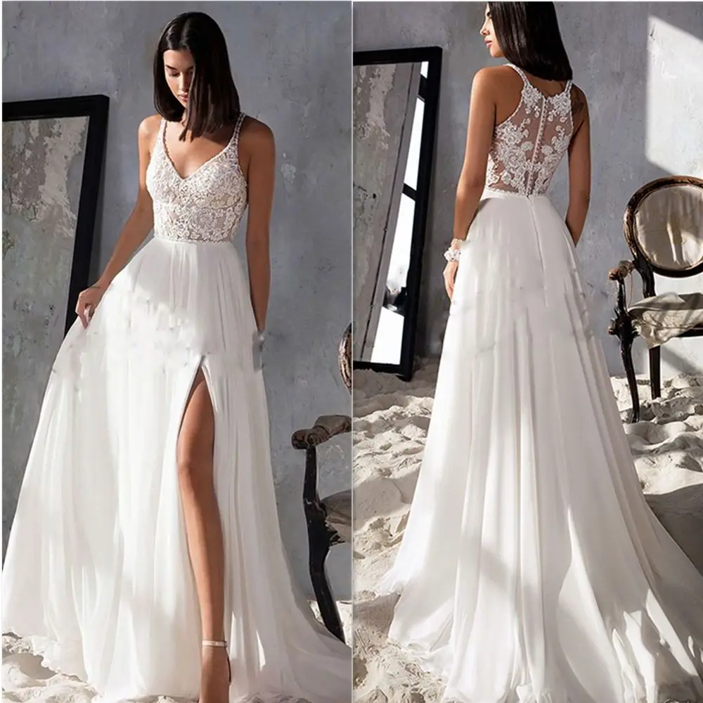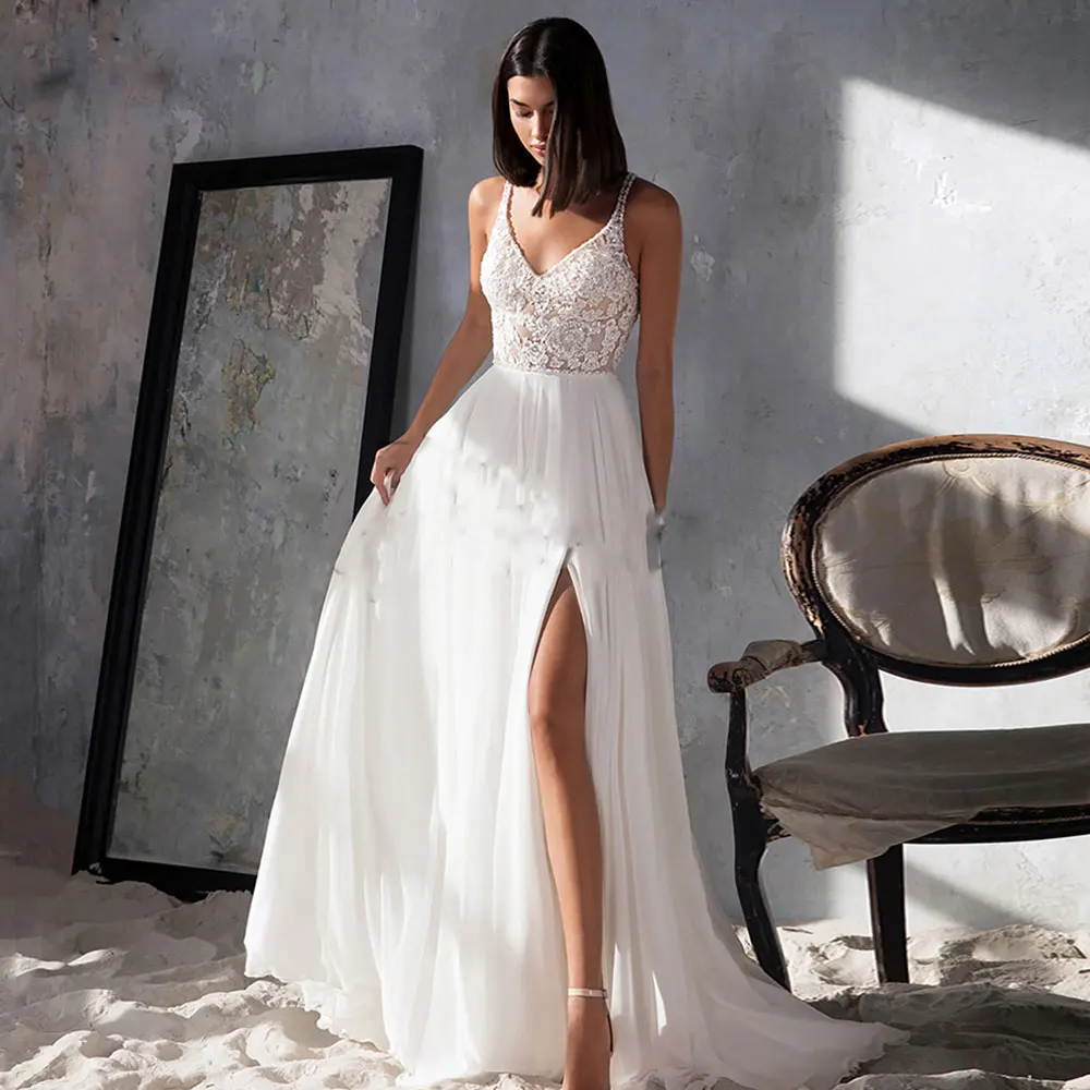 Простое свадебное платье с V-образным вырезом и высоким разрезом спереди для женщин, выполненное на заказ 2022, женское свадебное платье на бретелях-спагетти