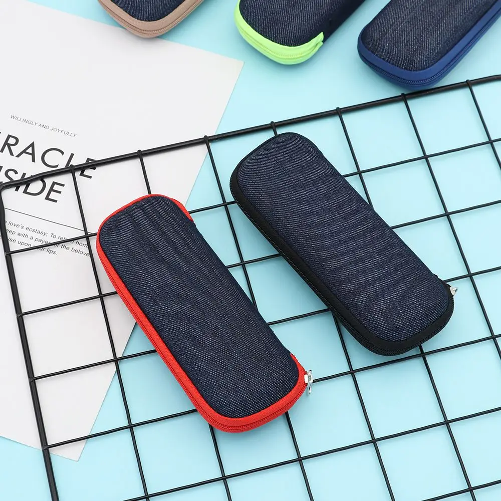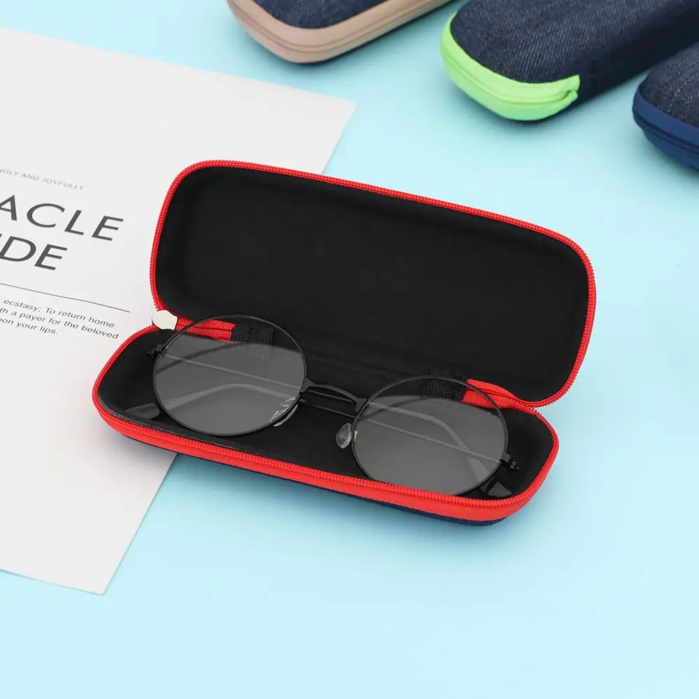 Футляр для очков из джинсовой ткани, чехол на молнии для солнцезащитных очков, жесткий защитный чехол для очков для чтения, портативный чехол для солнцезащитных очков, 1 шт.