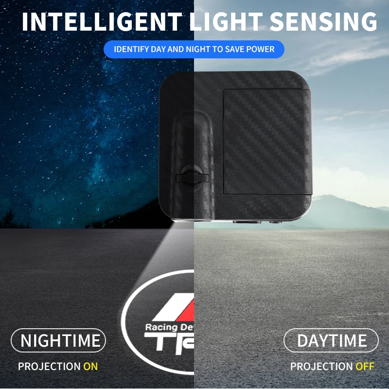 2. Умный светильник. Ослепляющий светильник с логотипом и сигнальный светильник будут отображаться на земле, когда вы откроете дверь автомобиля, и он выключится, когда вы закроете дверь.