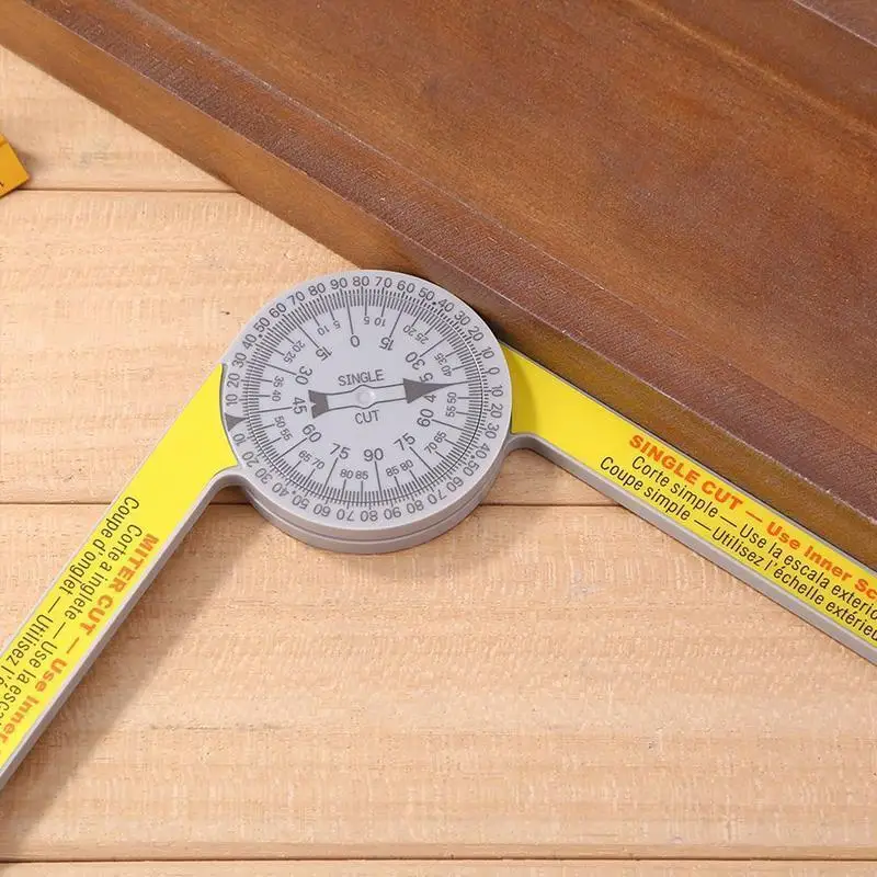 > Универсальный измерительный инструментНаше устройство для измерения угла деления пилы для деревообработки подходит для рисования, архитектурного дизайна, столярных работ, измерения угла и длины и т. д. идеально подходит для укладки, обрезки, сантехники и различных других видов деревообработки.