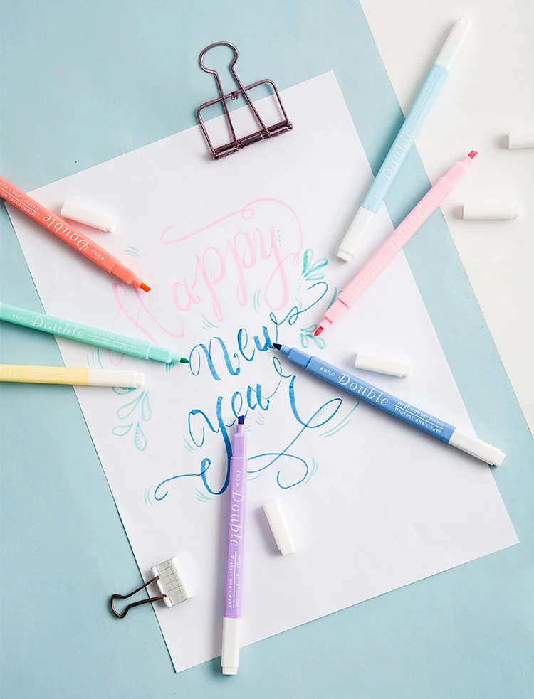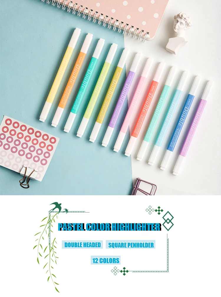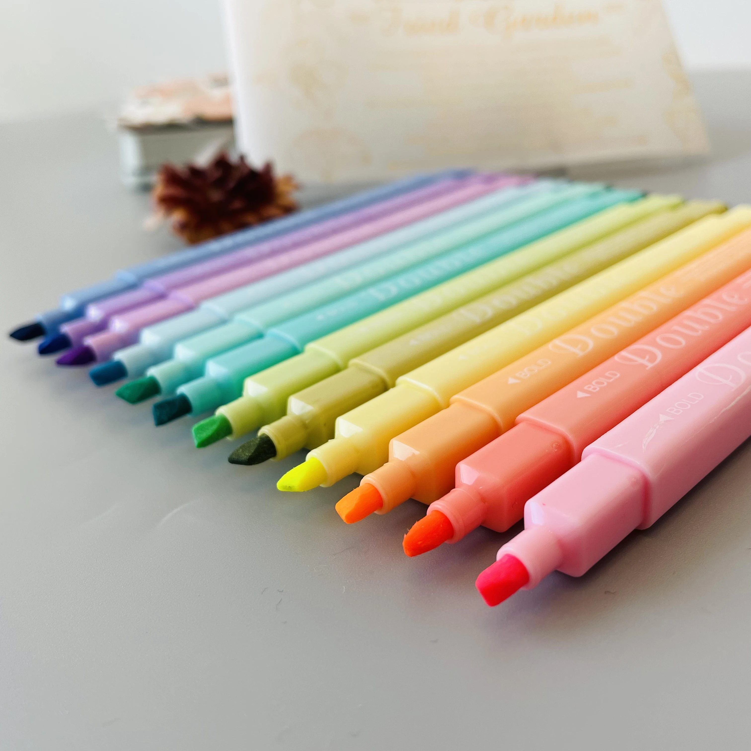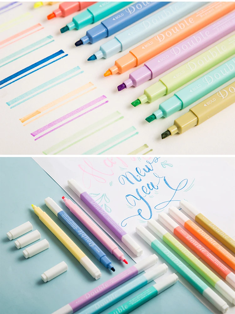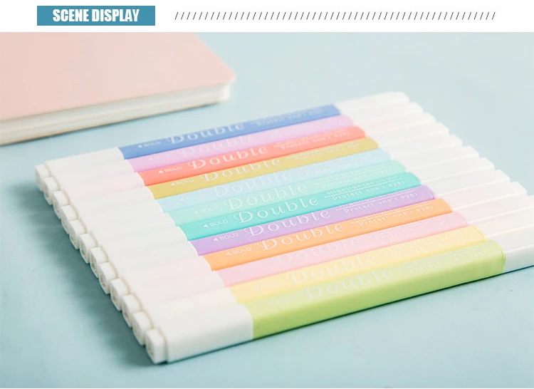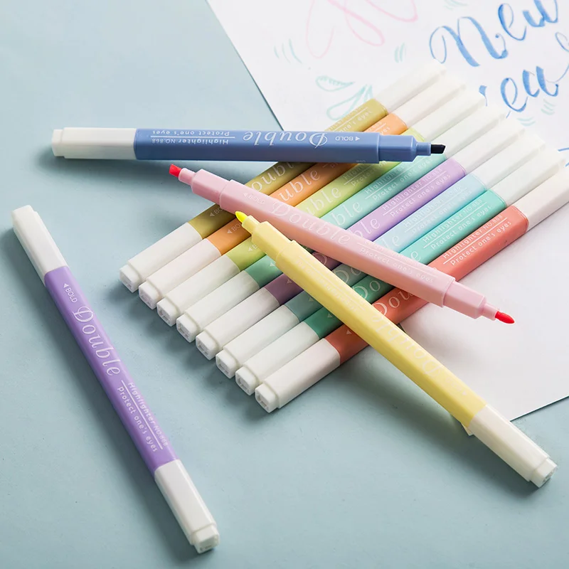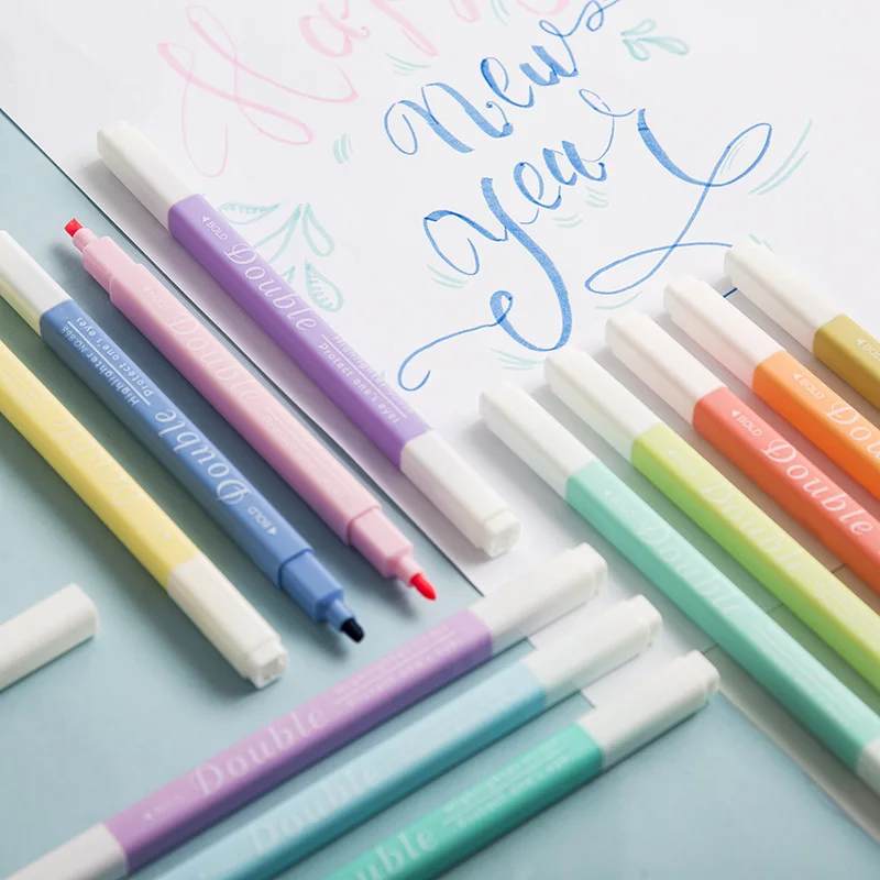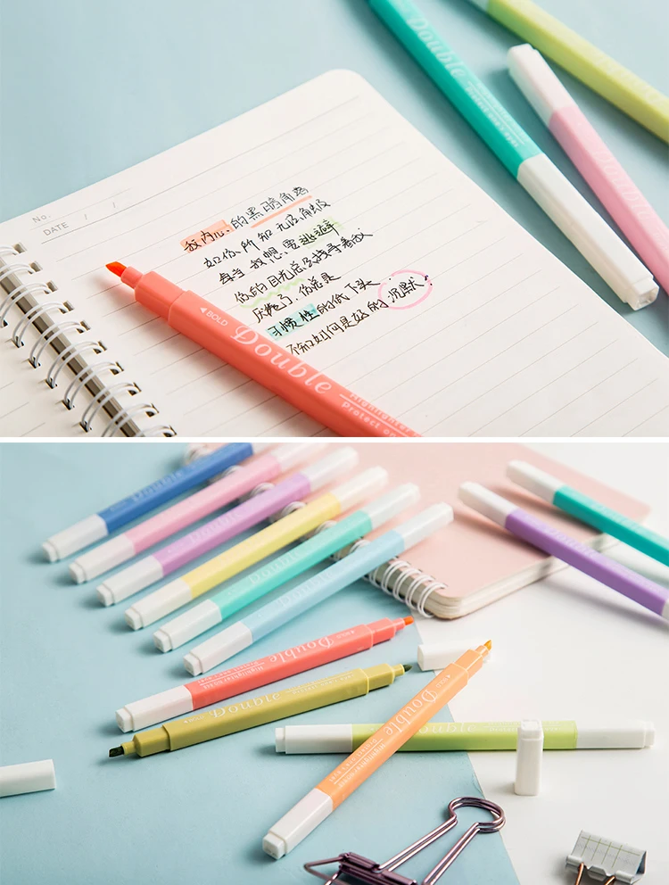 12 цветов двухсторонний маркер-карандаш пастельного цвета флуоресцентный квадратный маркер школьные канцелярские принадлежности для студентов
