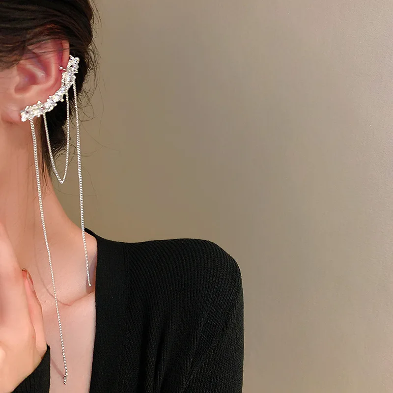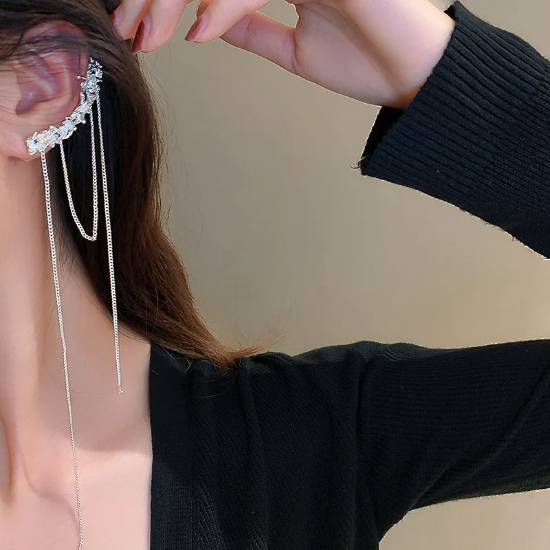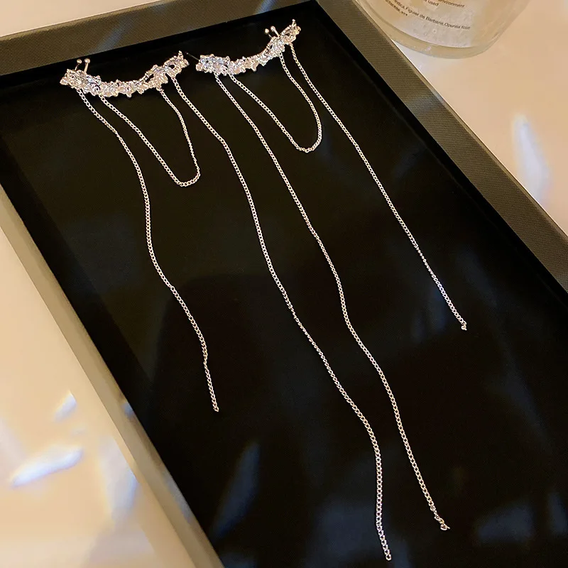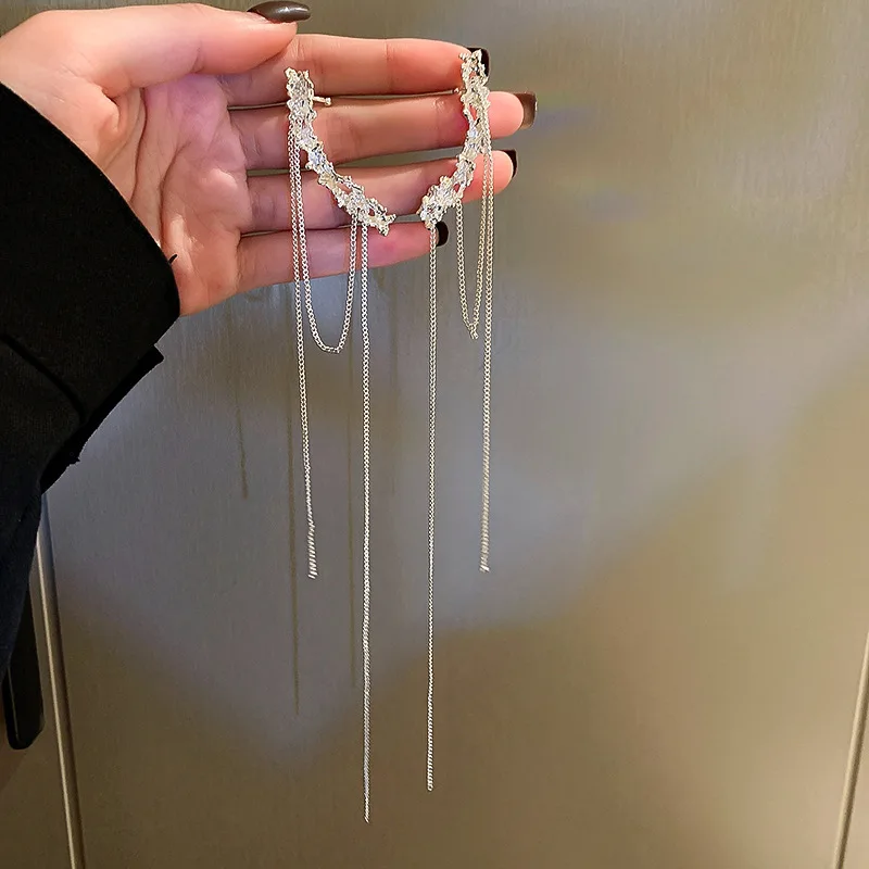 Женские серьги-клипсы с кисточками, серебро 925 пробы