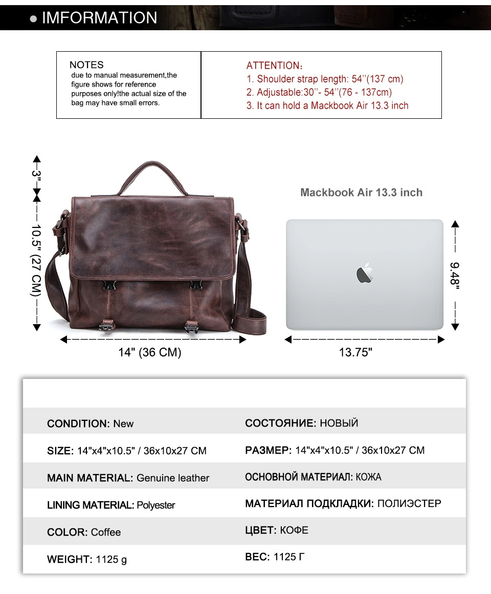 Портфель мужской из натуральной кожи, сумка-мессенджер для ноутбука 13,3 дюйма, деловой портфель для мужчин