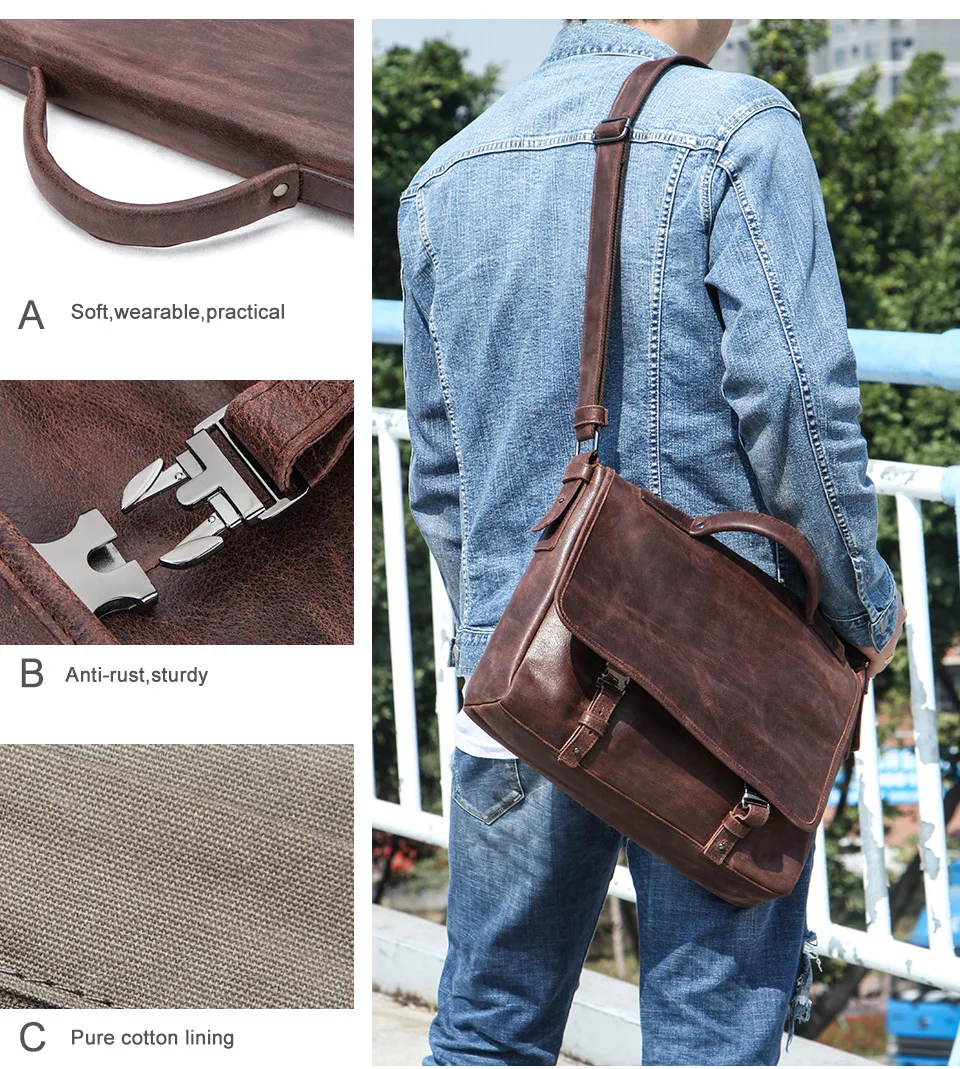 Портфель мужской из натуральной кожи, повседневный саквояж на плечо...