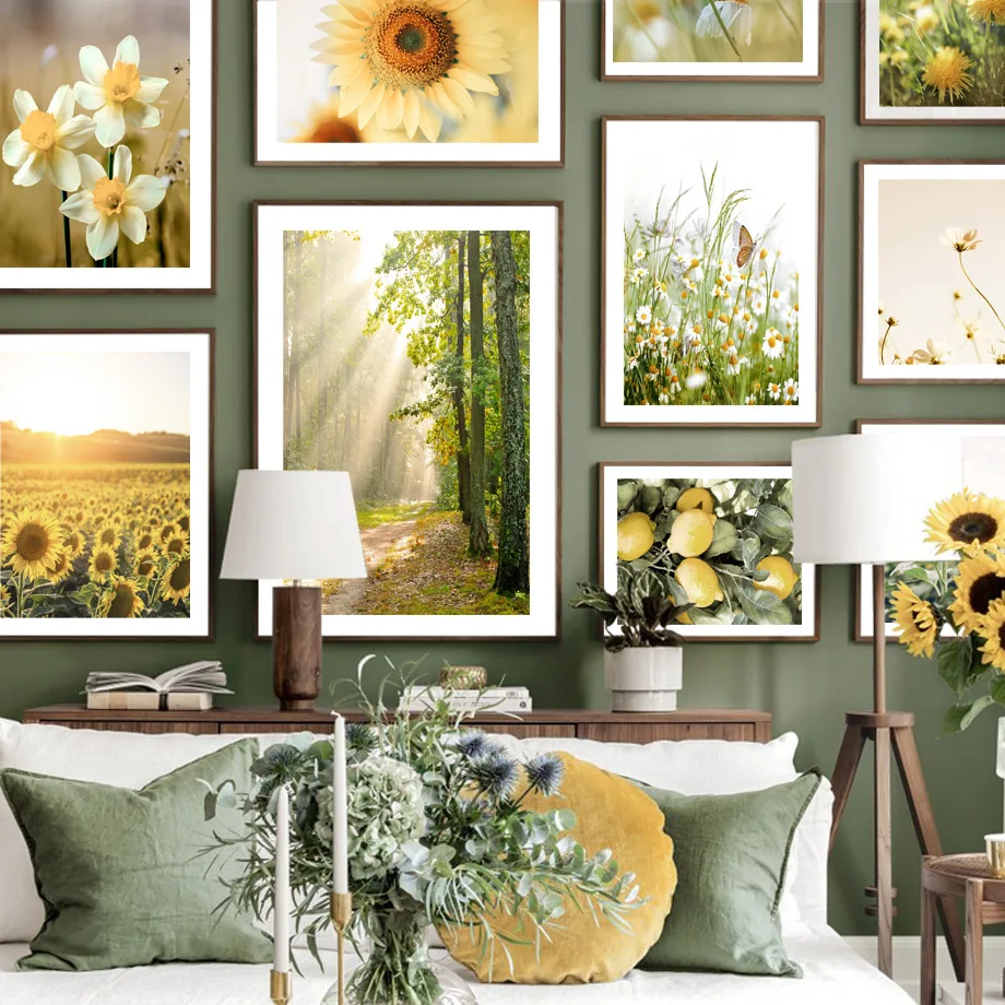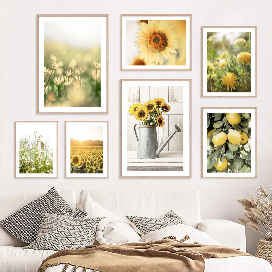 Скандинавский плакат Солнечный свет тени Подсолнух поле Лимонное дерево настенное Искусство Печать холст живопись пейзаж картинки для декора гостиной