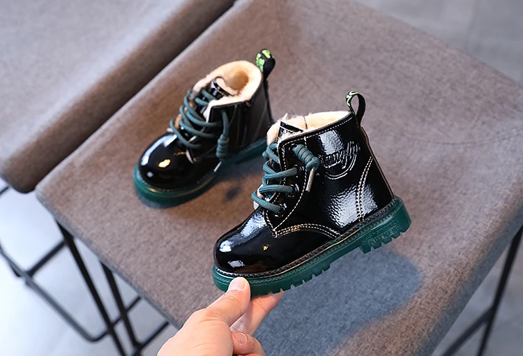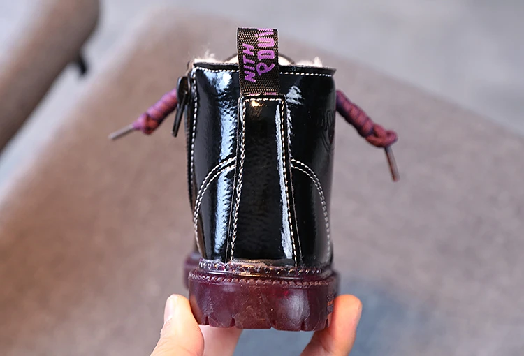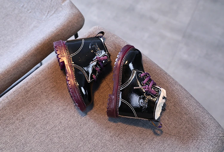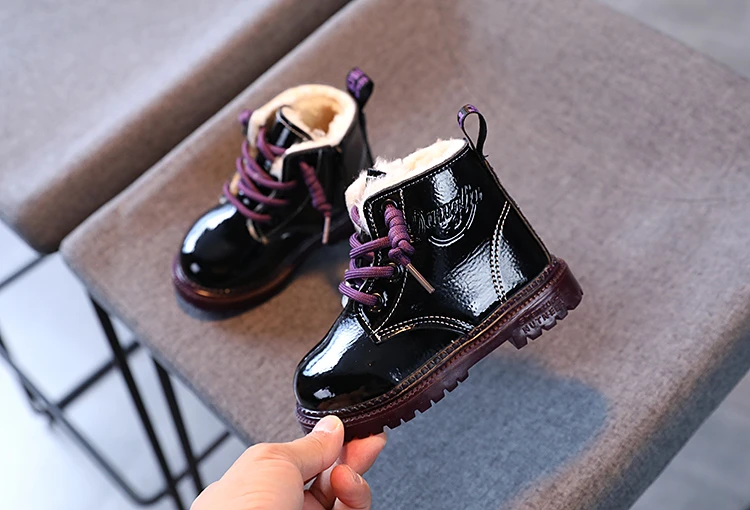 Детские зимние плюшевые ботинки, теплые Нескользящие модные ботинки из искусственной кожи для мальчиков и девочек, милые мягкие осенние ботинки на молнии с цветочным принтом для детей 21-30 лет