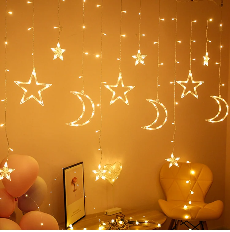 ИД Мубарак с изображением луны и звезд, Led Шторы гирлянда светильн...