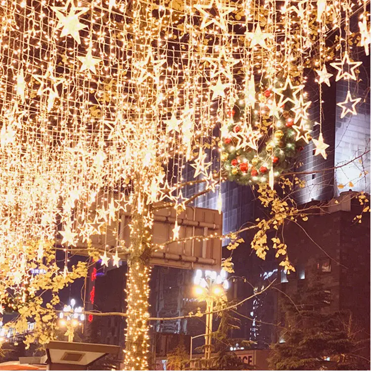 ИД Мубарак Звезда Луна светодиодная занавеска гирлянда струнный све...