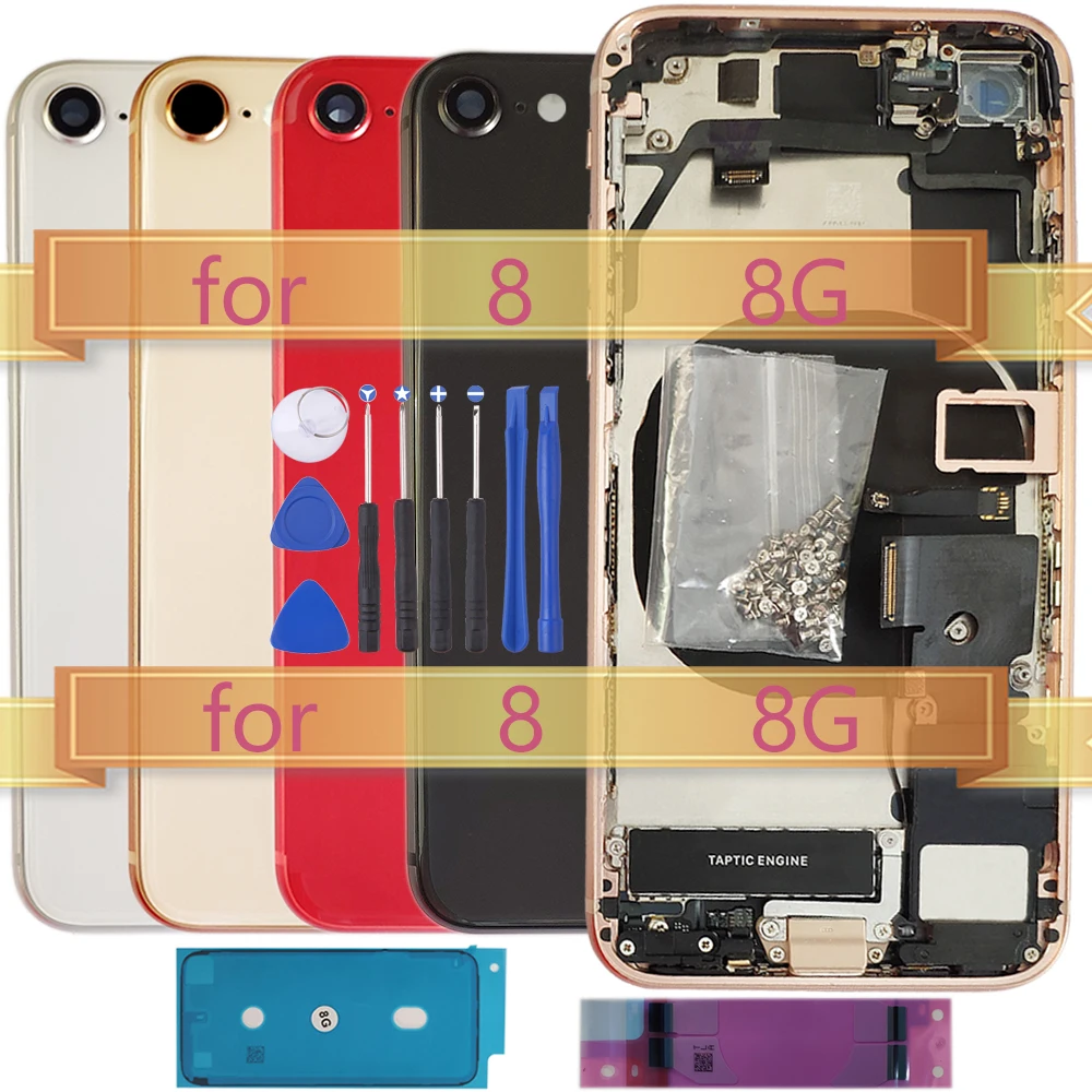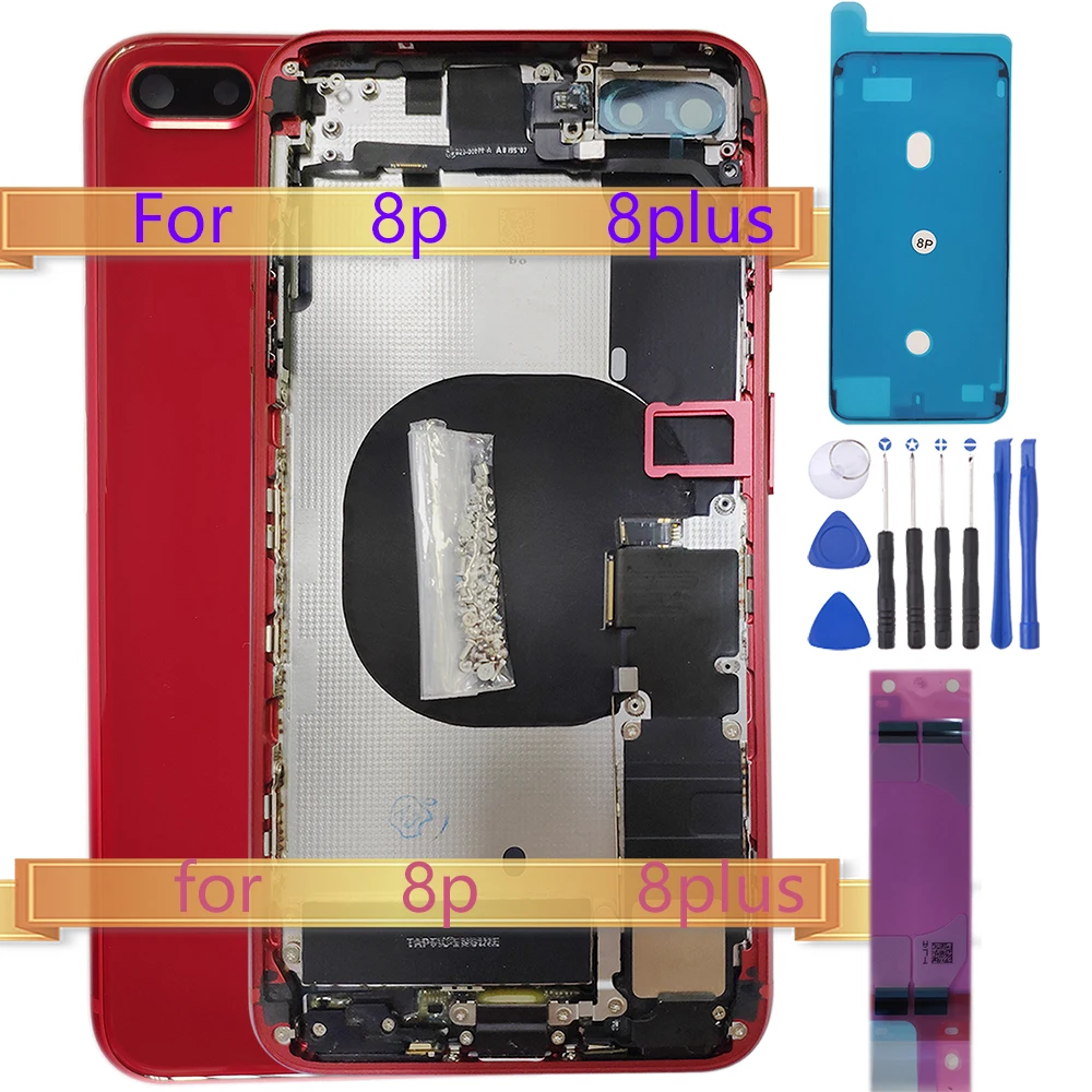 Сменная задняя крышка для IPhone 8 8g 8p 8plus, задняя средняя рамка с задней крышкой батарейного отсека, черная, белая, красная, золотая