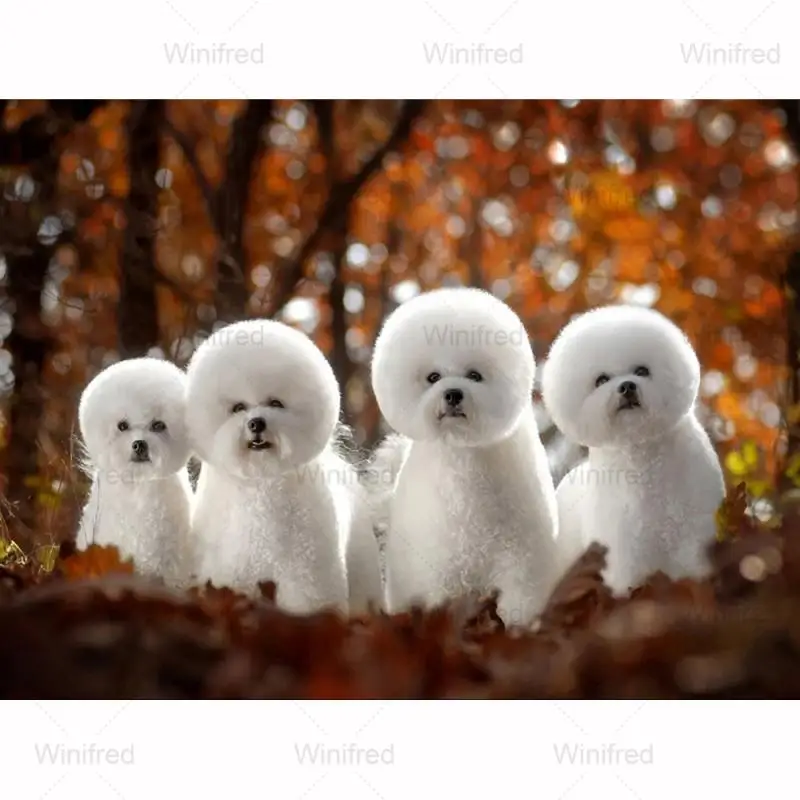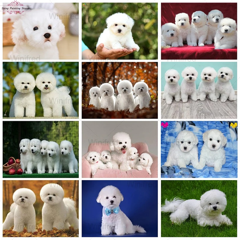 5D алмазная живопись сделай сам, Бишон, картина разы, маленькие белые собаки, алмазная вышивка, вышивка крестиком, декор ручной работы