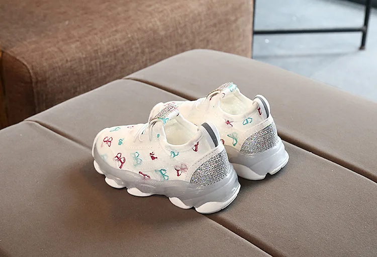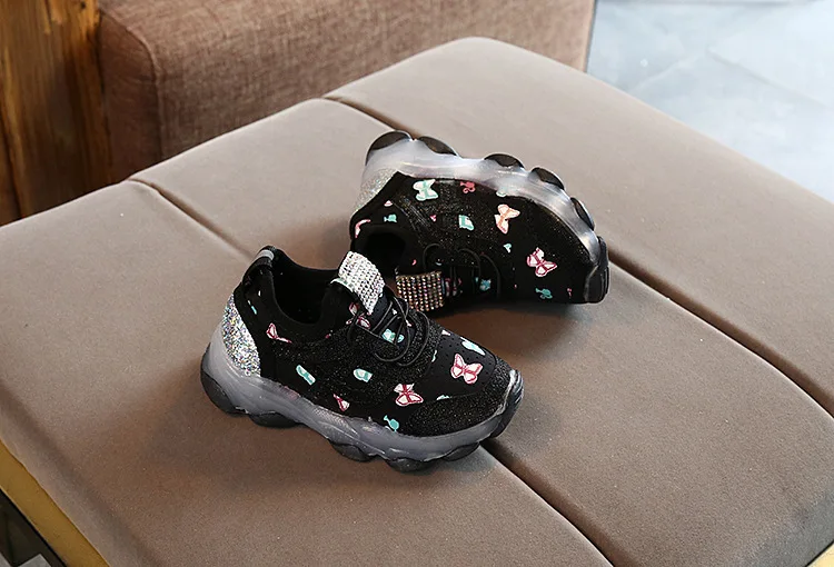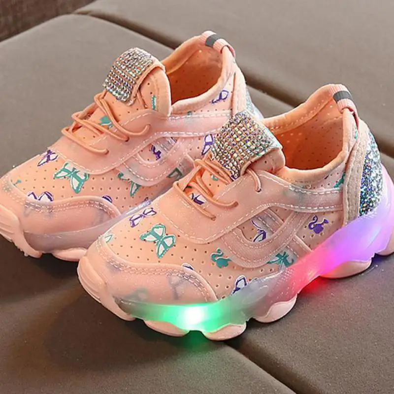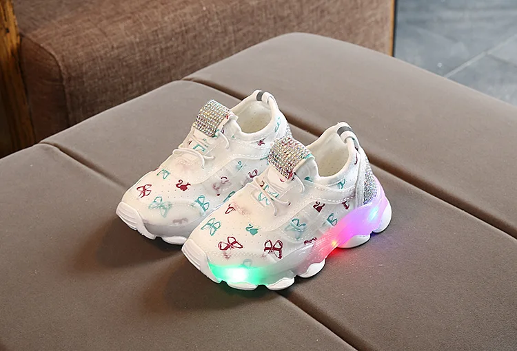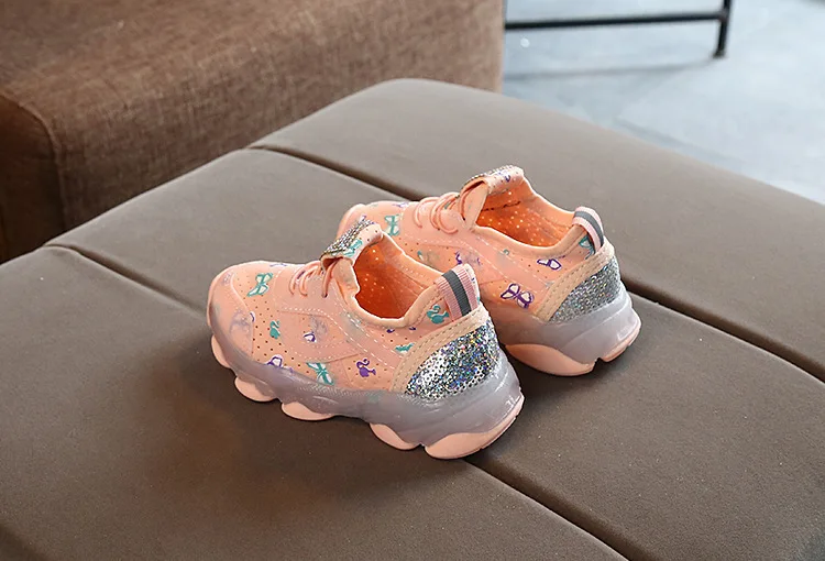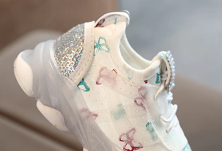 Детские светящиеся кроссовки, детская обувь принцессы с бабочкой дл...
