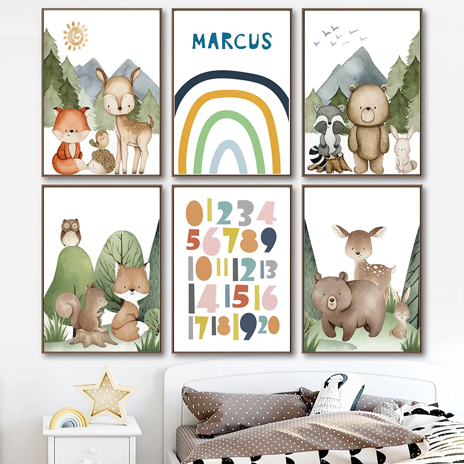 Бохо мультфильм Радуга Лебедь Лев Кролик ABC Дошкольное нордическое...