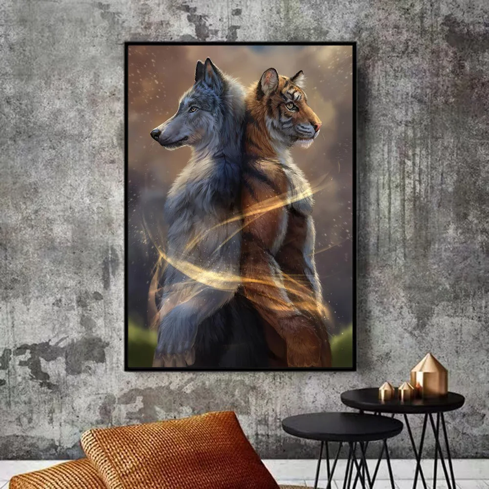 Постер на холсте с изображением черно-белых животных ин-Ян Лев Любовь картина на стену декоративные картины для комнаты Куадрос