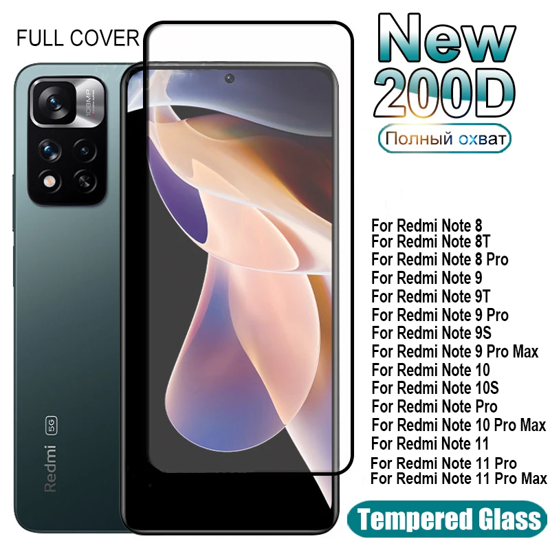 Защитное стекло 200D с полным покрытием для Xiaomi Redmi NOTE 9 10 8 11 Pro 9S, пленка для экрана Redmi 8, 9, 10X, 8A, 9A, 9C, 9T, 8T, стеклянная пленка