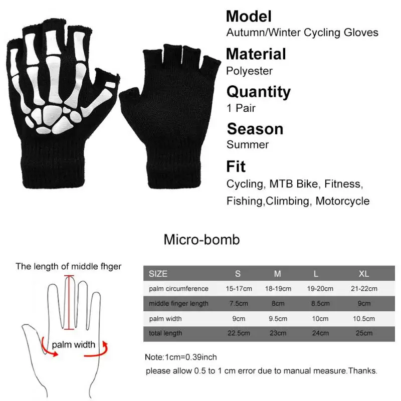 Перчатки для Хэллоуина, модные полуперчатки, блестящие перчатки в стиле призрака, с рисунком черепа, рандомные Варежки Унисекс, зимние теплые перчатки