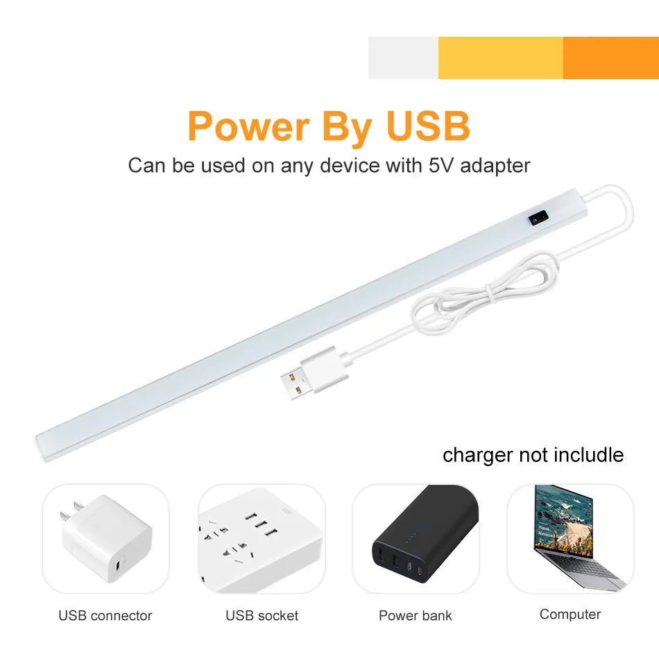 20 30 40 см движения PIR Сенсор ручная развертка светодиодный ночной Светильник USB 5V лампы дневного света Спальня настольная лампа для чтения дома Кухня Шкаф Настенный декор